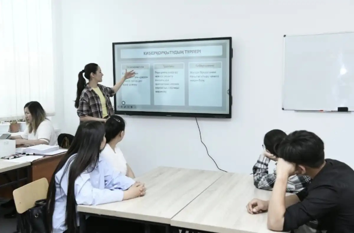 Студенттерге цифрлық технологияларды қауіпсіз пайдаланудың негізгі қағидалары, әлеуметтік желілерде қарым-қатынас этикасы, интернеттегі алаяқтық пен кибербуллингтен қорғану жолдары түсіндірілді.