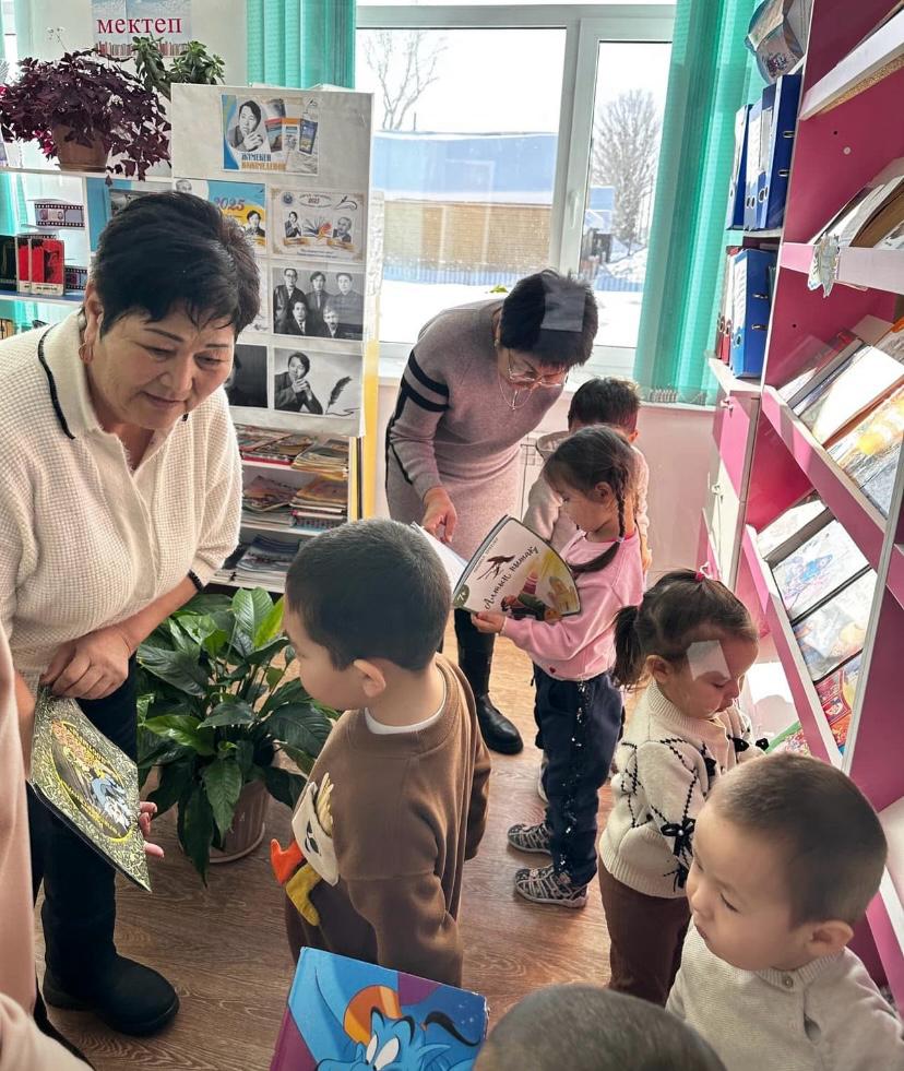 28 мамыр күні Абай атындағы орта мектебінің балабақшасынан кішкене бүлдіршіндері “Бала деген бір бақыт” атты кітапханаға саяхат жасады. Саяхаттың мақсаты:балалардың жеке қасиеттерін дамыту, тақпақ, өлең, әндерді нақышына келтіре айтуды үйрету. Бір – бірін сыйлауға, адамгершілік қасиеттерін жоғалтпай ұстауға жетелеу. Болашақ ұрпағымыз білімді, ақылды болуына тілектеспіз.