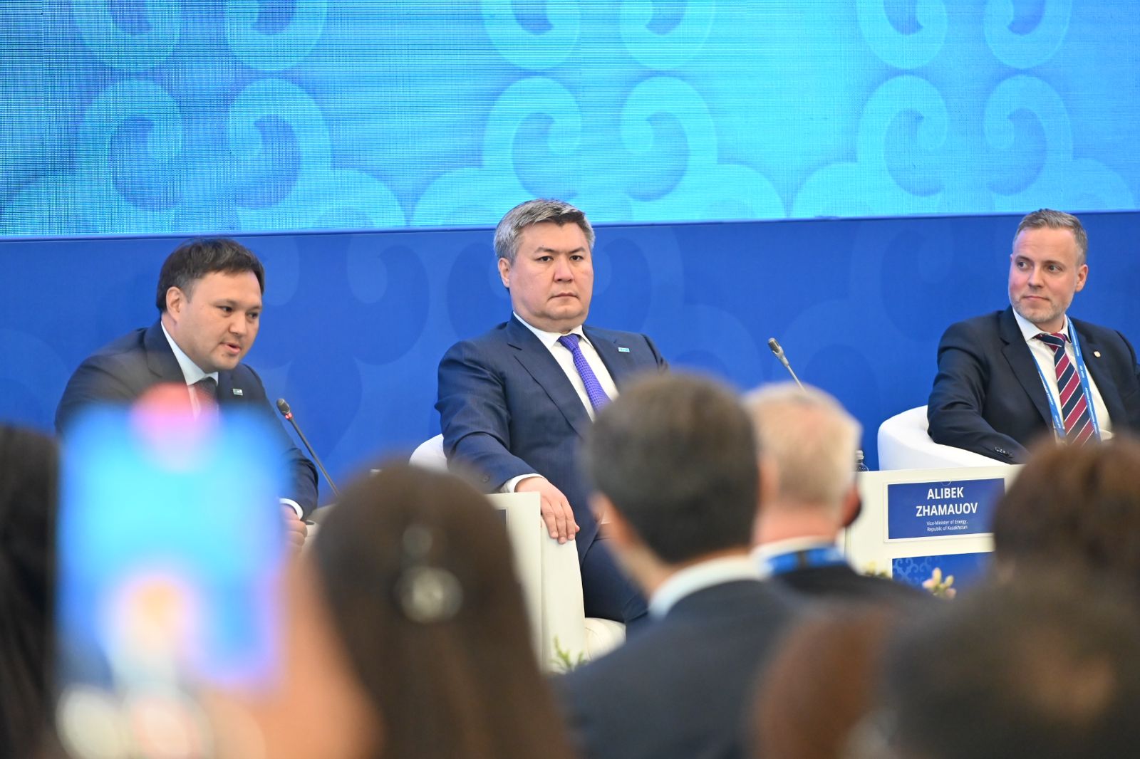 Астана, 2025 жылғы 29 мамыр. Қазақстан Республикасы Энергетика вице-министрі Әлібек Жамауов Астана халықаралық форумында «2025 жылы энергетикалық қауіпсіздік: энергия көшуі мен тұрақтылық арасындағы тепе-теңдік» тақырыбындағы панельдік сессияға қатысып, сөз сөйледі.