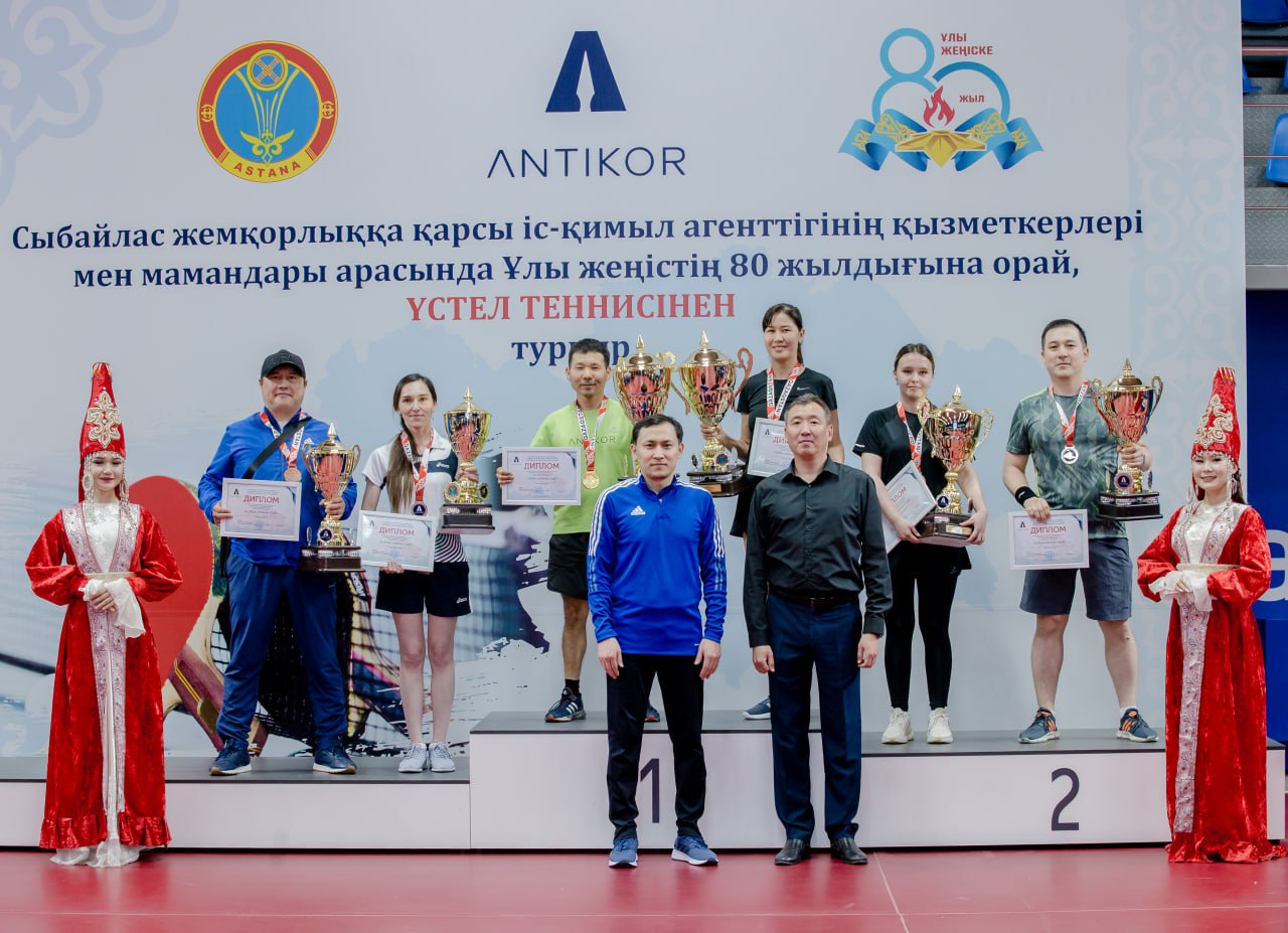 Астана қаласында салауатты өмір салтын насихаттау мақсатында Сыбайлас жемқорлыққа қарсы іс-қимыл агенттігі Жеңістің 80 жылдығына арналған сыбайлас жемқорлыққа қарсы қызмет органдарының қызметкерлері арасында үстел теннисінен турнир ұйымдастырды.