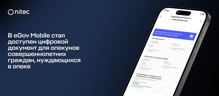 eGov Mobile мобильді қосымшасында кәмелет жасына толған азаматтарға қамқоршылық жасайтын тұлғалар туралы мәліметтері бар цифрлық құжат қолжетімді болды. Бұл құжат «Е-Собес» ақпараттық жүйесіндегі деректер негізінде жасалады, онда тіркелген барлық қамқоршылар, қорғаншылар және олардың қамқорлығындағы азаматтар туралы мәліметтер сақталады.