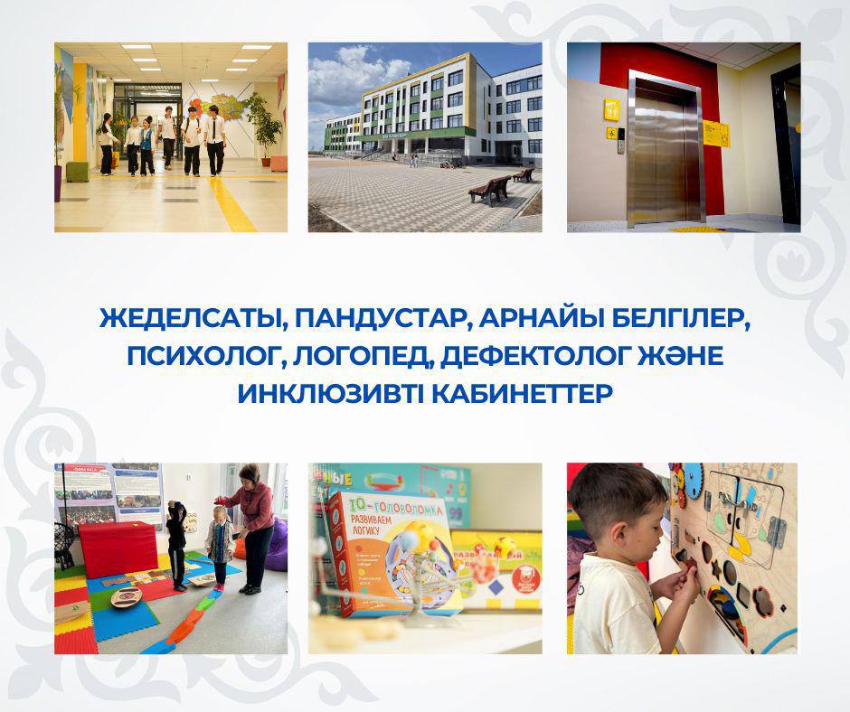 Ерекше білім беру қажеттіліктері бар балаларды оқыту үшін қолайлы жағдайлар жасалған: жеке санитарлық бөлмелері бар кең кабинеттер қарастырылған. Мектептерде жеделсаты, пандустар, арнайы белгілер орнатылған, сондай-ақ психолог, логопед және дефектолог кабинеттері жабдықталған.