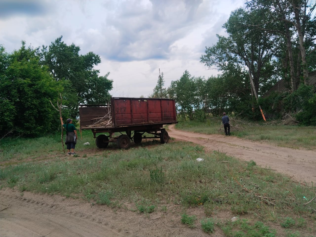 Сосновка ауылындағы құрғақ бұтақтарды жинау және әкету
