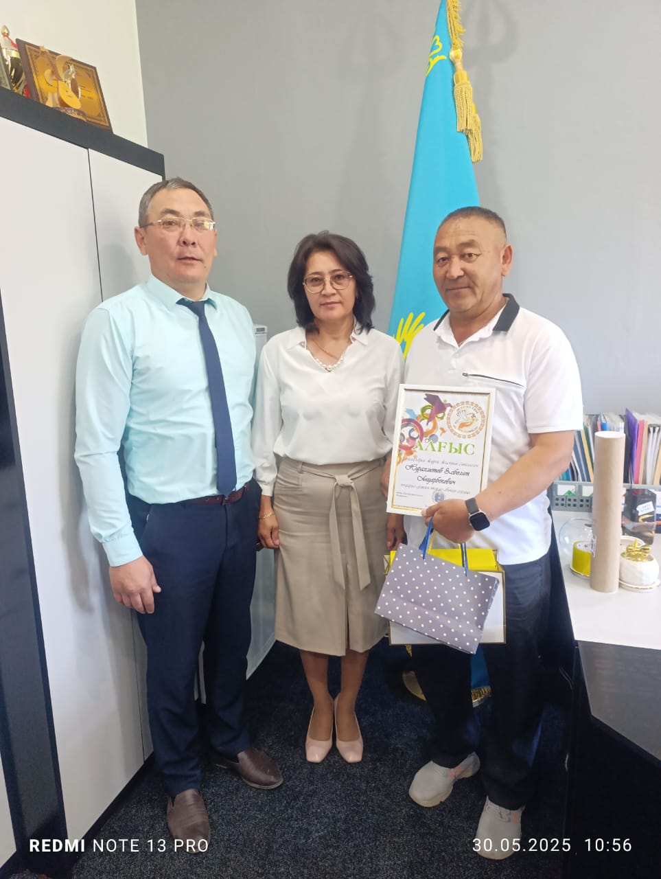 Білім бөлімінің басшысы Бауыржан Бақытжанұлы “Жүректен жүрекке” акциясының үздік демеушісі Нурахметов Есболат Ануарбекұлына білім басқармасының басшысы Чернышёва Инесса Александровнаның алғыс хатын табыстады.