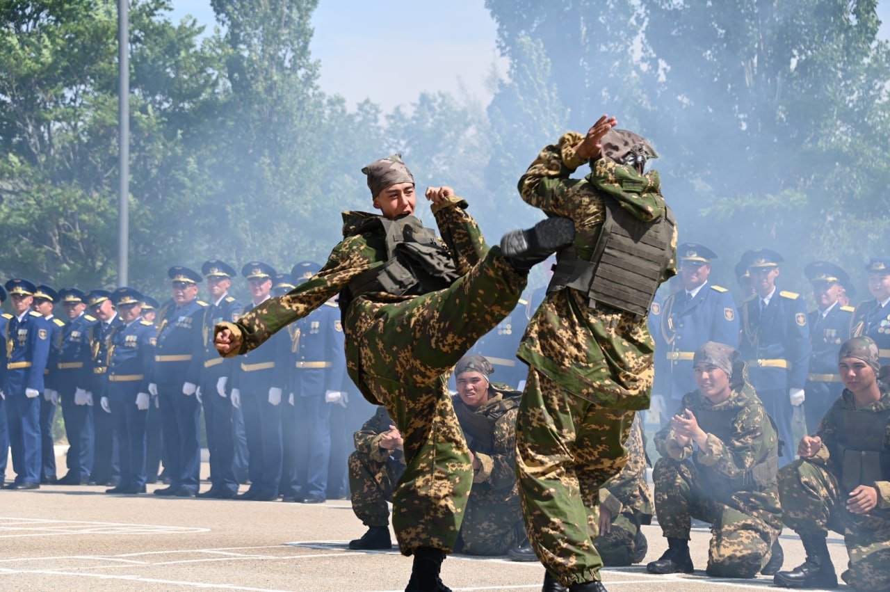 Ресми бөлім аяқталған соң, жас жауынгерлер өздерінің машықтарын көрсетті. Олар қол күресі элементтерін, саптық жүріс пен қарумен жұмыс істеу тәсілдерін паш етті. Сарбаздардың өнері ата-аналарға нағыз тосынсый болды. Олар ұлдарының дайындығының жоғары деңгейіне куә болды.