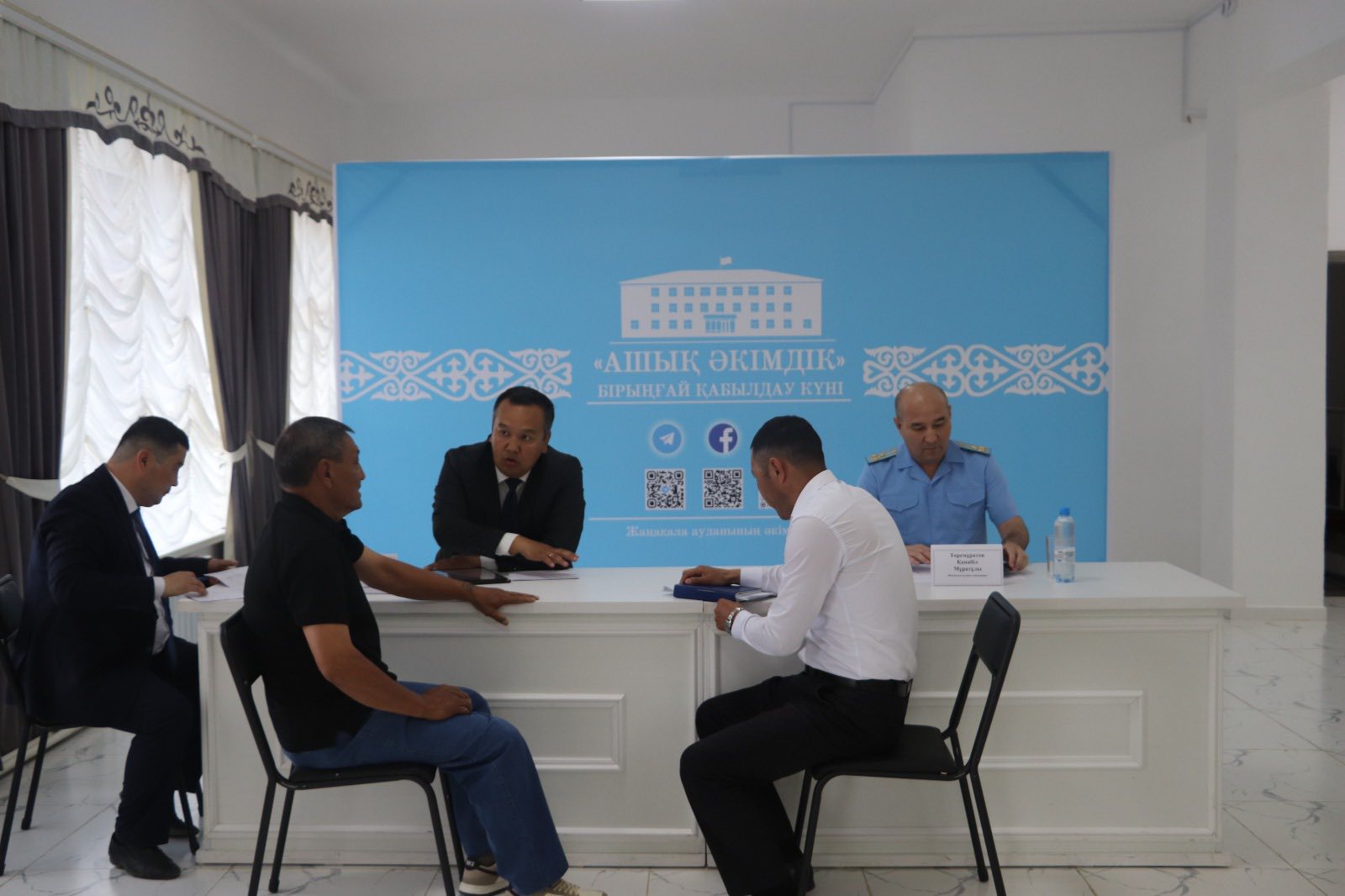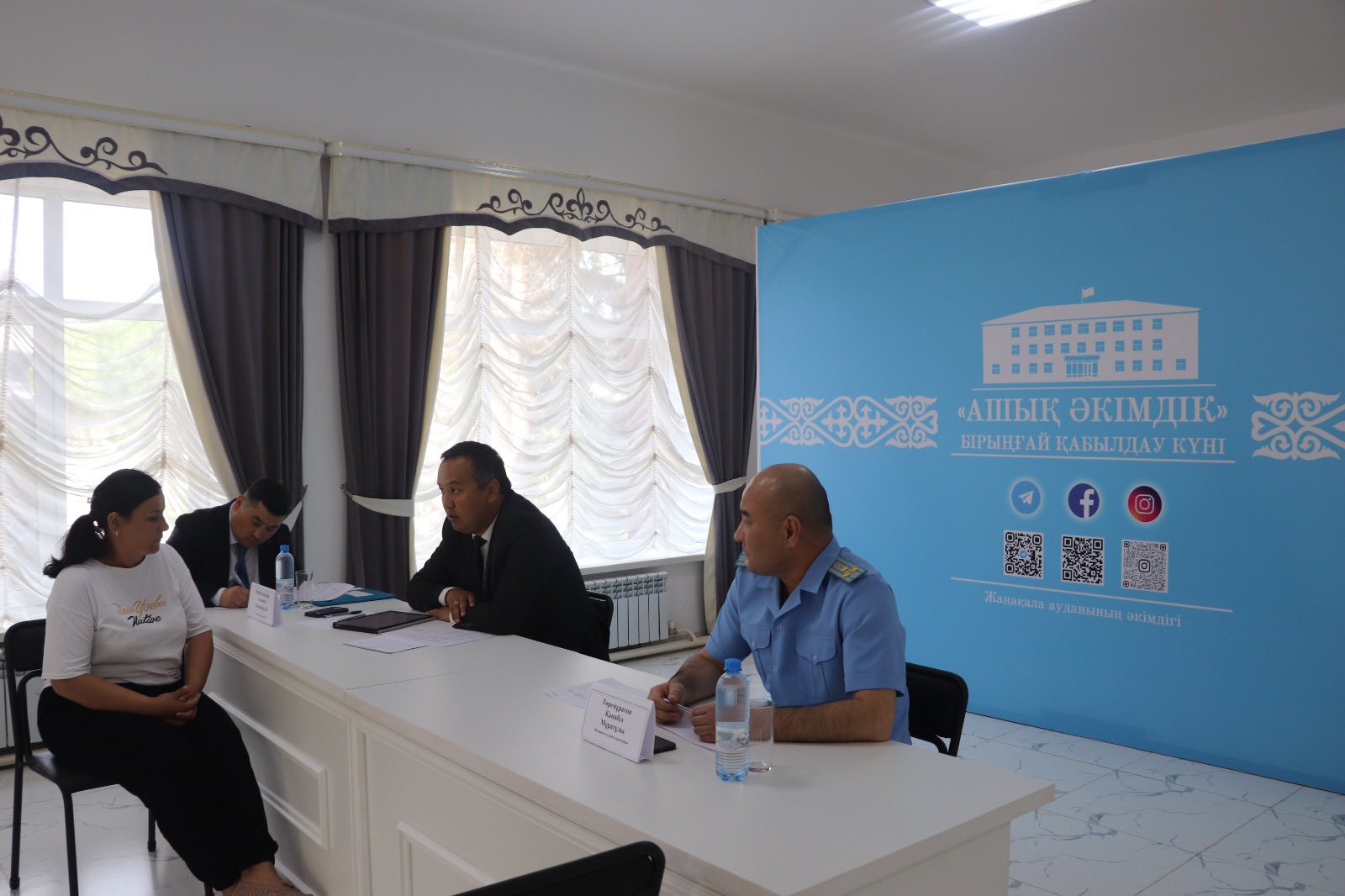 Ашық есік күнінде аудан тұрғындарын аудан әкімі А.Көшкінбаев, аудан прокуроры Қ.Төремұратов, адвокат, нотариус, сот орындаушылар және мемлекеттік мекеме басшылары қабылдап тұрғындардың әр-түрлі мәселелері бойынша түсінік жұмыстарын жүргізіп, заң аясында көмек көрсетті.