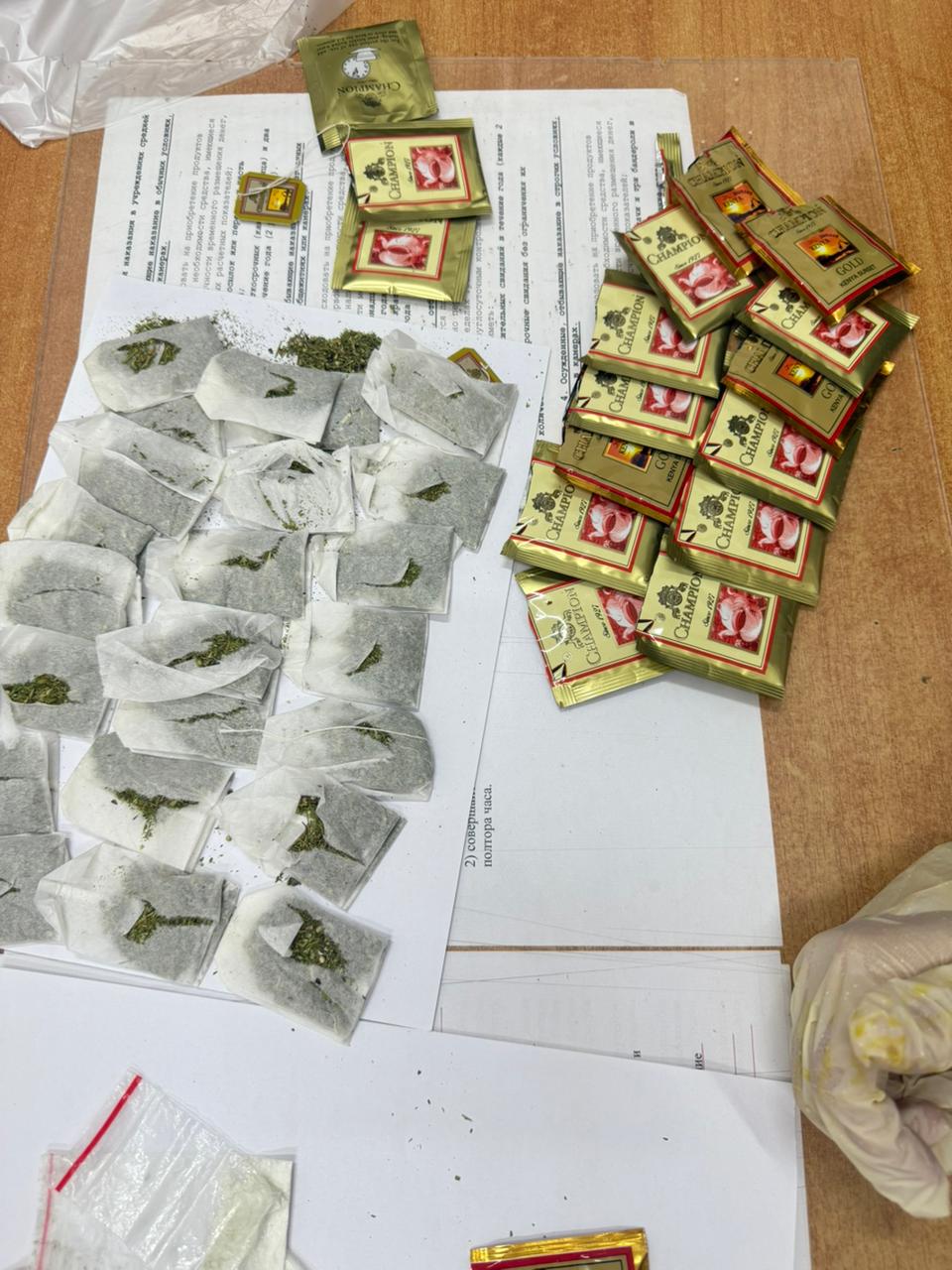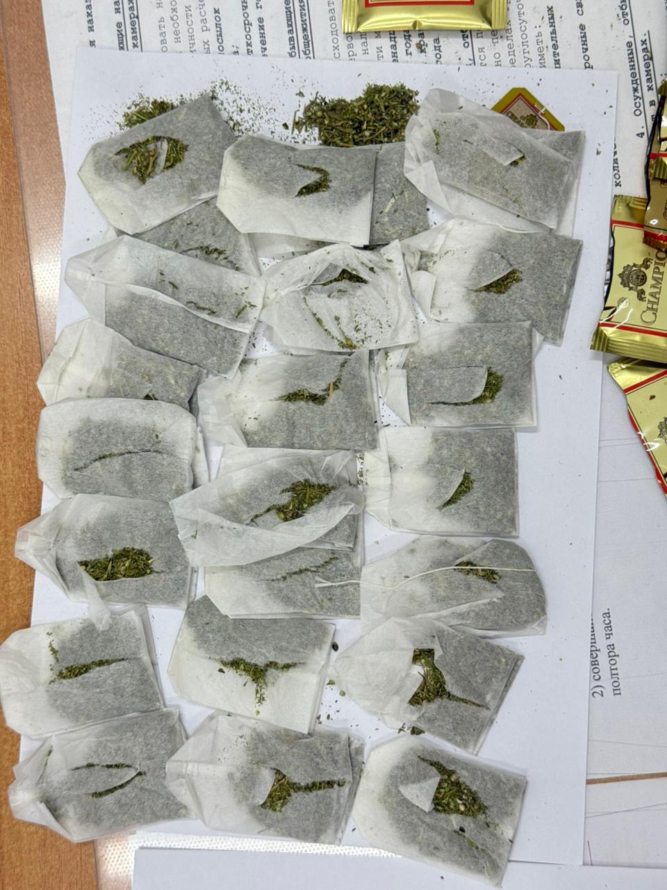 Оперативтік және режимдік бөлімдердің қызметкерлері прокуратура өкілінің қатысуымен келген сәлемдемені тексеру барысында күдік тудыратын заттар анықталды. Шай салынған орамның ішінен ерекше иісі бар қою жасыл түсті өсімдік тектес заттармен толтырылған 23 дана шай қалтасы және ақ түсті ұнтақ тәрізді зат салынған 3 дана зип-пакет тәркіленді.