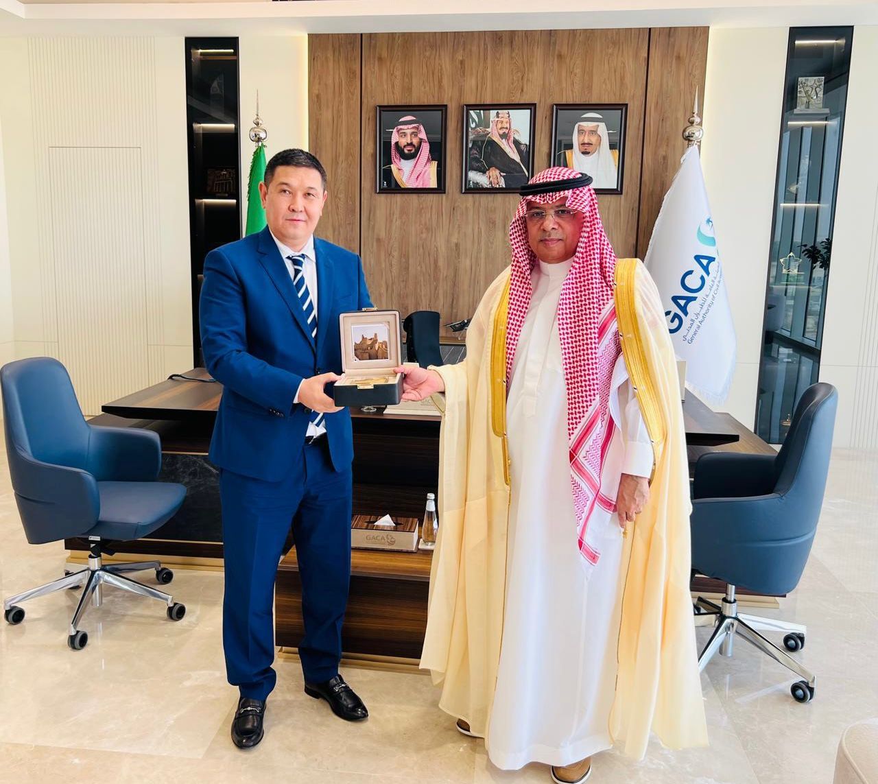 Ар-Рияд, 2025 жылғы 1 маусым – Қазақстанның Сауд Арабиясындағы Елшісі Мадияр Меңілбеков Сауд Арабиясының Азаматтық авиация Бас басқармасының (GACA) Президенті Абдулазиз әл-Дуаиледжмен кездесті.