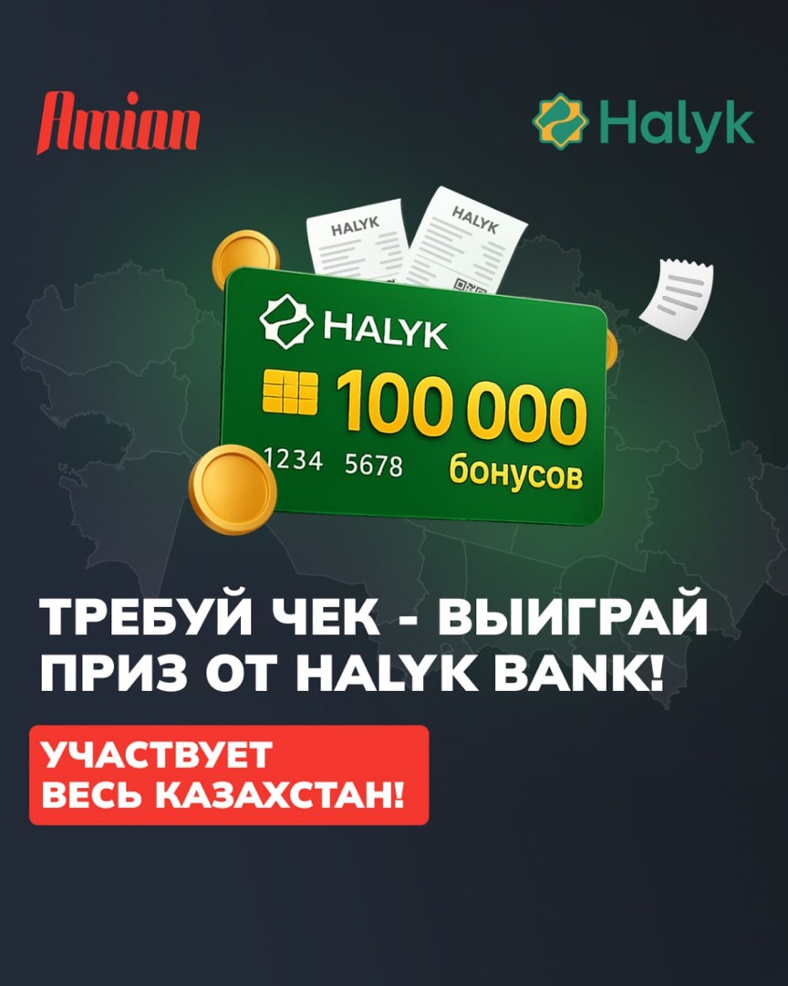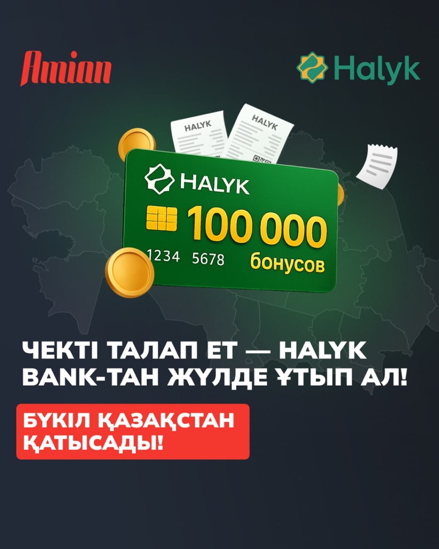 Қазақстан Республикасы Қаржы министрлігі Мемлекеттік кірістер комитеті Halyk Bank және Amian мобильді қосымшасымен бірлесіп, «Чекті талап ет — Halyk Bank-тен сыйлық ұтып ал!» атты республикалық акцияны іске қосады.
