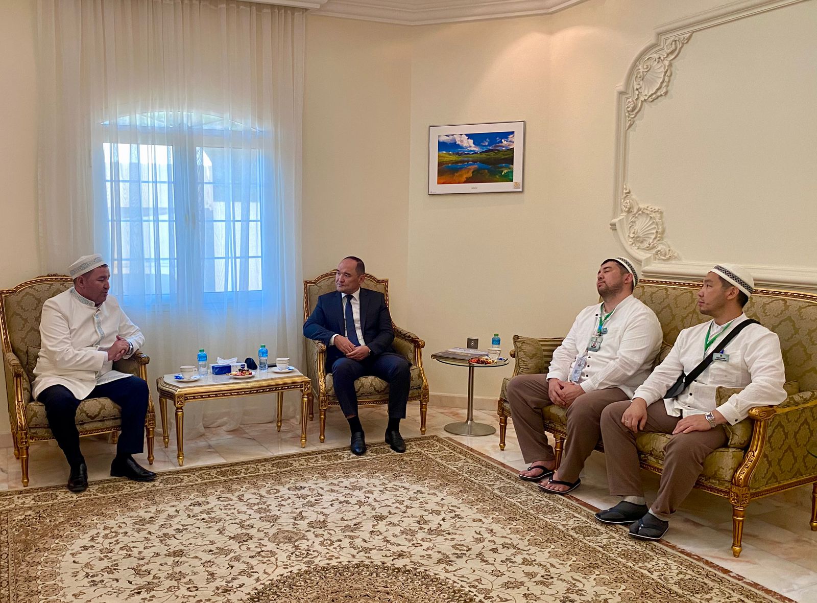 Жидда, 2025 жылғы 1 маусым – Қазақстан Республикасының Жидда қаласындағы (Сауд Арабиясы Корольдігі) Бас консулы Руслан Қоспанов Қазақстанның қажылық миссиясының төрағасы, Наиб мүфти Кенжетай Дүйсенбай бастаған делегациямен кездесу өткізді.