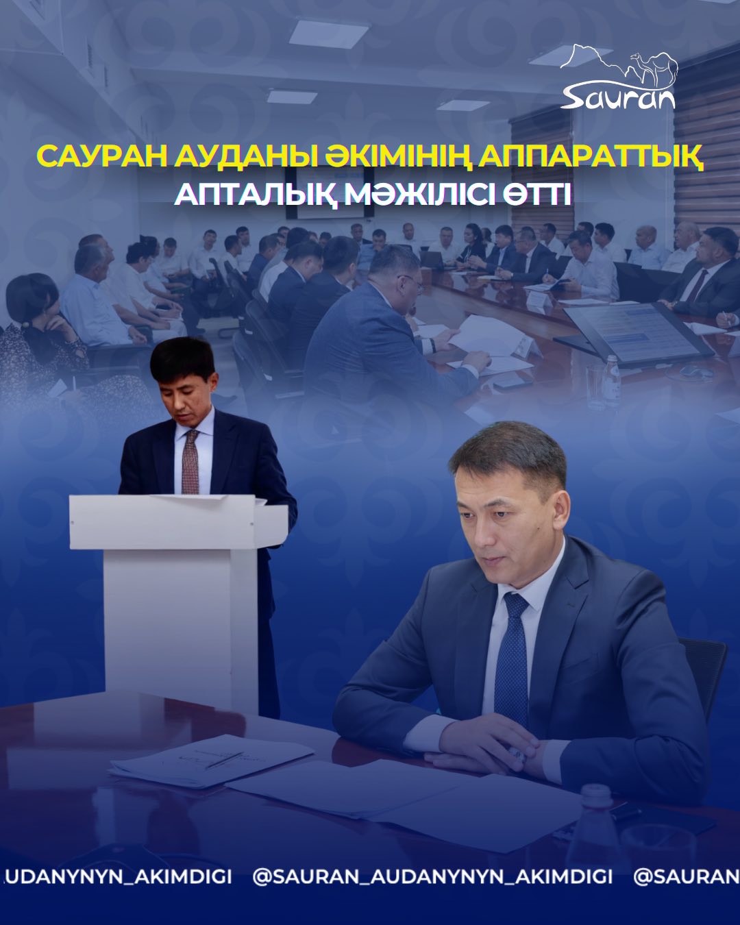 Сауран ауданының әкімі Мақсат Таңғатаровтың төрағалығымен кезекті аппараттық мәжіліс өтті. Жиында ауданның әлеуметтік және экономикалық бағыттарындағы бірқатар өзекті мәселелер қаралып, тиісті бөлім басшылары мен жауапты тұлғалар есеп берді.