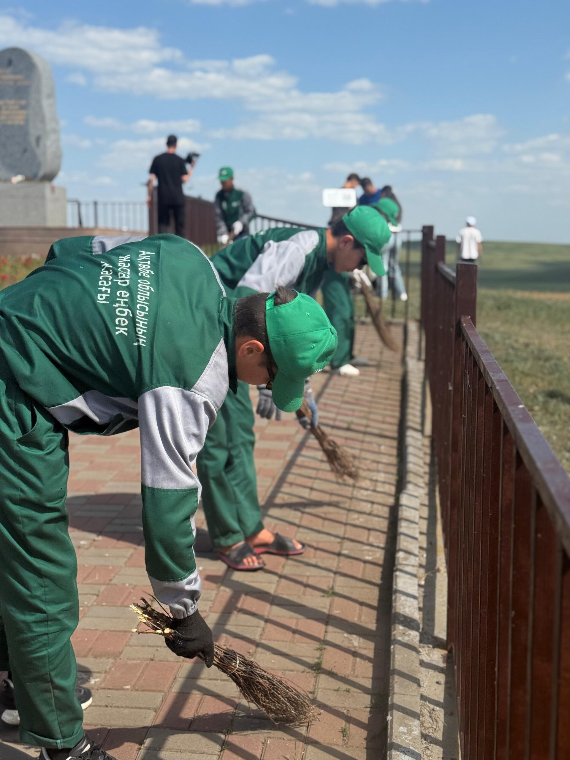 Тазалық жұмыстарына Облыстық жастар ресурстық орталығының мамандары, «Жасыл ел» жастар еңбек жасағының сарбаздары, «Жастар рухы» ЖҚ жастары, волонтерлер мен белсенді жастар қатысты. Олар ескерткіш аумағында тазалық жұмыстарын жүргізіп, айналаны қоқыстан тазартты.