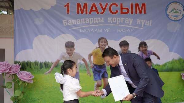 Мерекелік жиында аудан әкімінің орынбасары Мадияр Оразалиев сөз сөйлеп, балғын бүлдіршіндерді айтулы мерекемен құттықтап, «Балалар – ел ертеңі, ұлт болашағы. Олардың бақытты балалық шағы үшін жағдай жасау – бәріміздің ортақ міндетіміз. Білімді, саналы, дені сау ұрпақ тәрбиелеу – мемлекетіміздің басты мақсаты» деді.