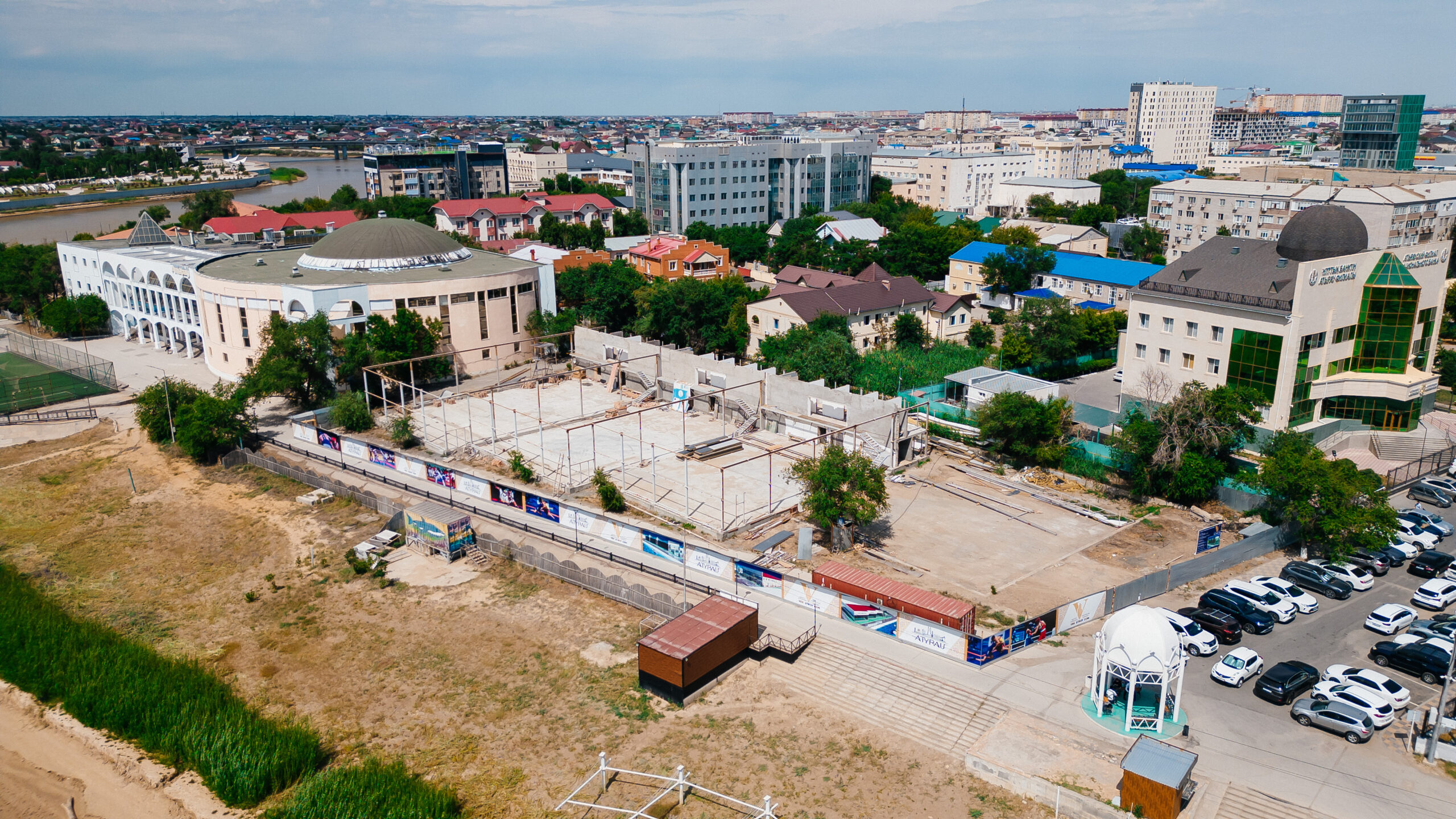 Нысандардың құрылысы Атырау облысы Құрылыс, сәулет және қала құрылысы басқармасының тапсырысы бойынша жүзеге асырылуда. Бұған дейін жобаны жүзеге асырған мердігер мекеме – «ТехникаРемСтрой» ЖШС-нің жұмысы мардымсыз деп танылып, онымен жасалған келісімшарт біржақты тәртіпте бұзылған. Қазір аталмыш компания мен лауазымды тұлғаларға қатысты сот процесі жүріп жатыр.
