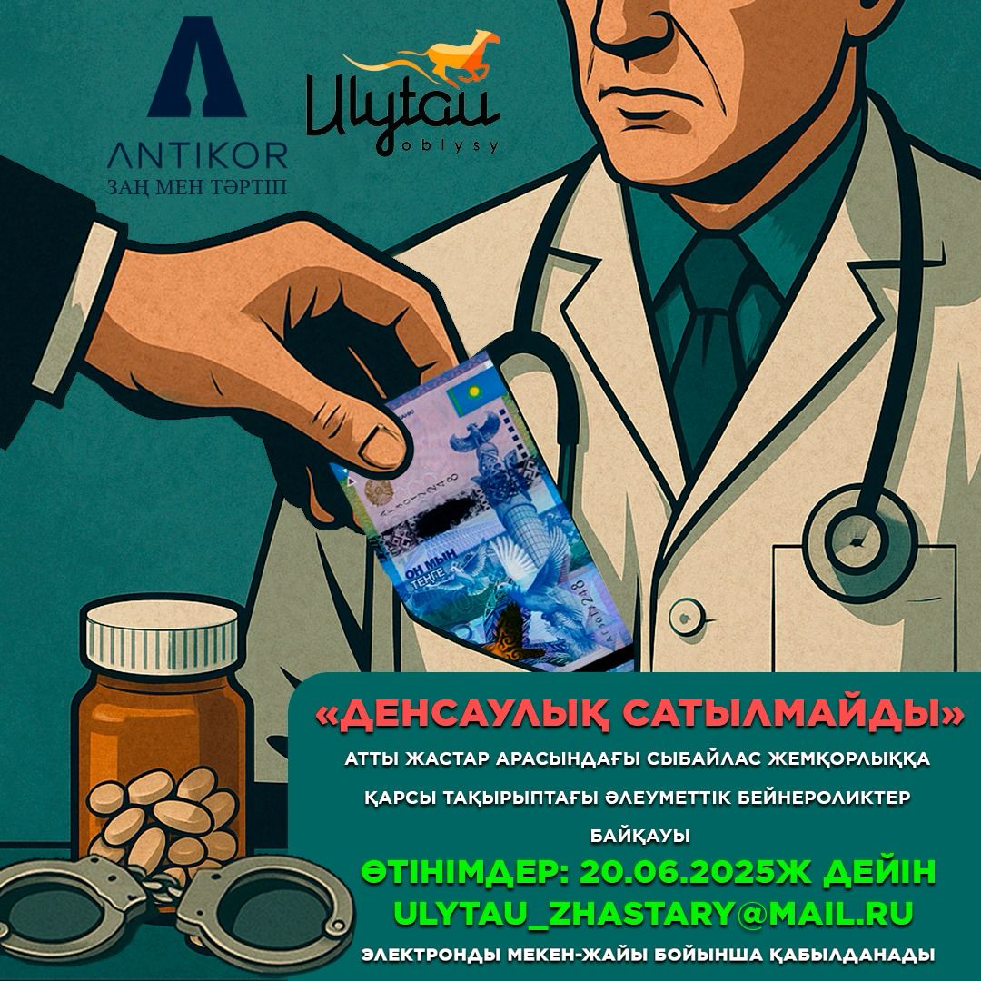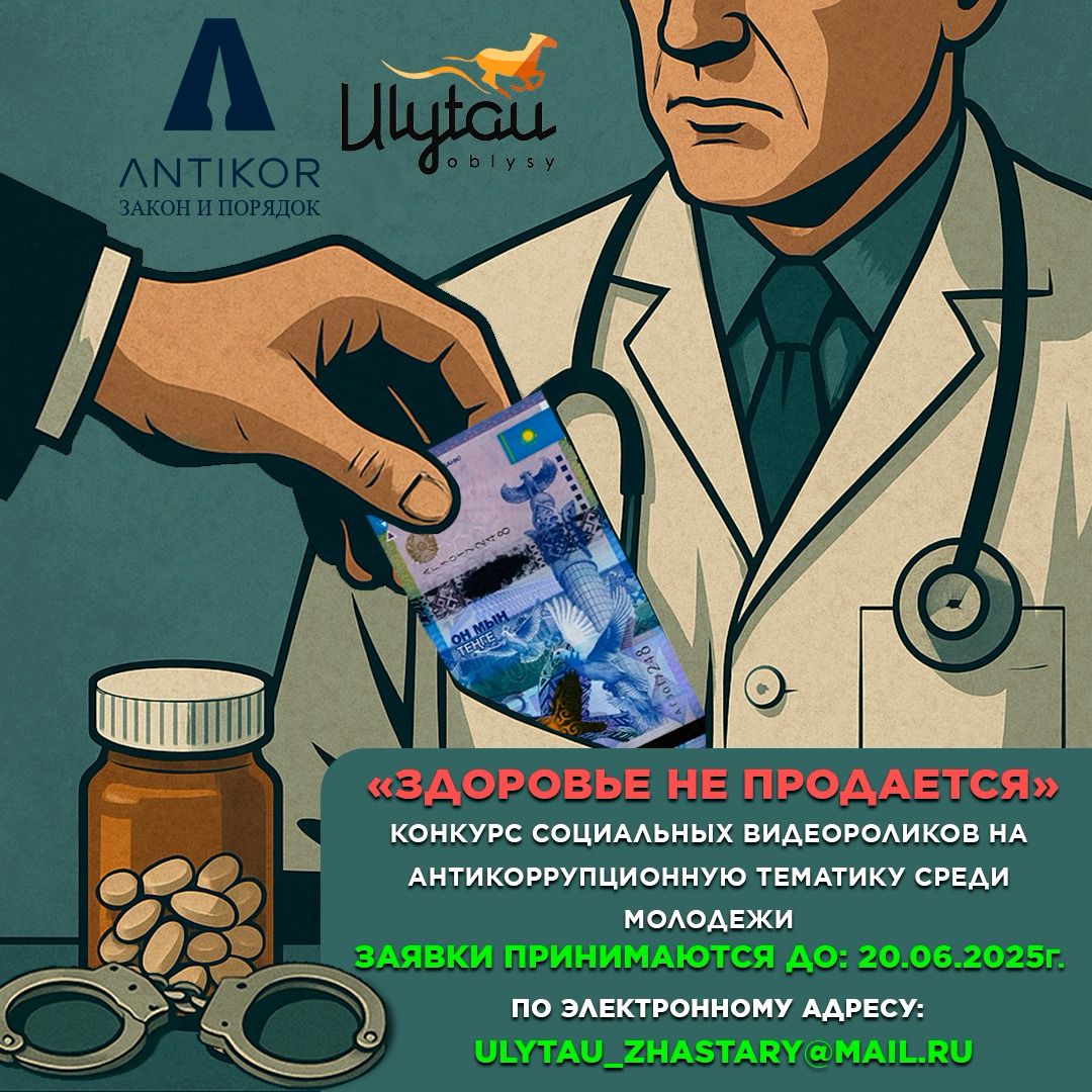 «Заң мен Тәртіп» қағидаты аясында Агенттіктің 2025 жылға арналған қоғамда сыбайлас жемқорлыққа қарсы мәдениетті қалыптастыру бойынша іс-шаралар жоспарына сәйкес, Департамент облыс әкімдігінің қолдауымен сыбайлас жемқорлыққа қарсы «ДЕНСАУЛЫҚ САТЫЛМАЙДЫ» республикалық жастар арасындағы әлеуметтік бейнероликтер байқауын ұйымдастыруда.