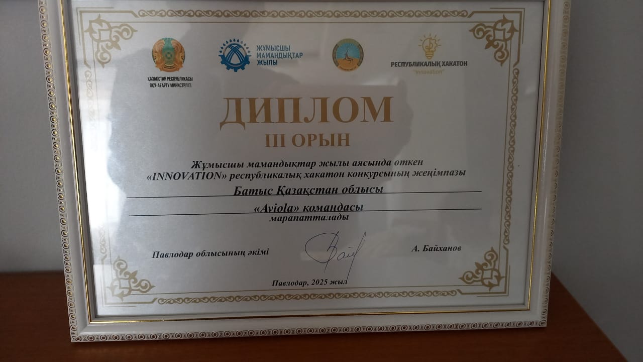 2024 жылдың 27–30 мамыр аралығында Алматы қаласында Жұмысшы мамандықтар жылы аясында өткен «Innovation» республикалық хакатон байқауында: