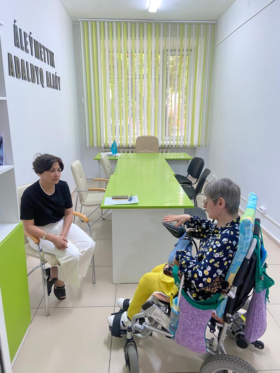 Ағымдағы жылғы 2 маусымда Қостанай облысы әкімдігінің жұмыспен қамтуды үйлестіру және әлеуметтік бағдарламалар басқармасы басшысының орынбасары Ә.Е. Мекебаева мүгедектігі бар адамдарды оңалтудың техникалық құралдарымен және қызметтерімен қамтамасыз ету, арнаулы әлеуметтік қызметтер көрсету мәселесі бойынша Адалдық алаңы қоғамдық қабылдауында кездесу өткізді.