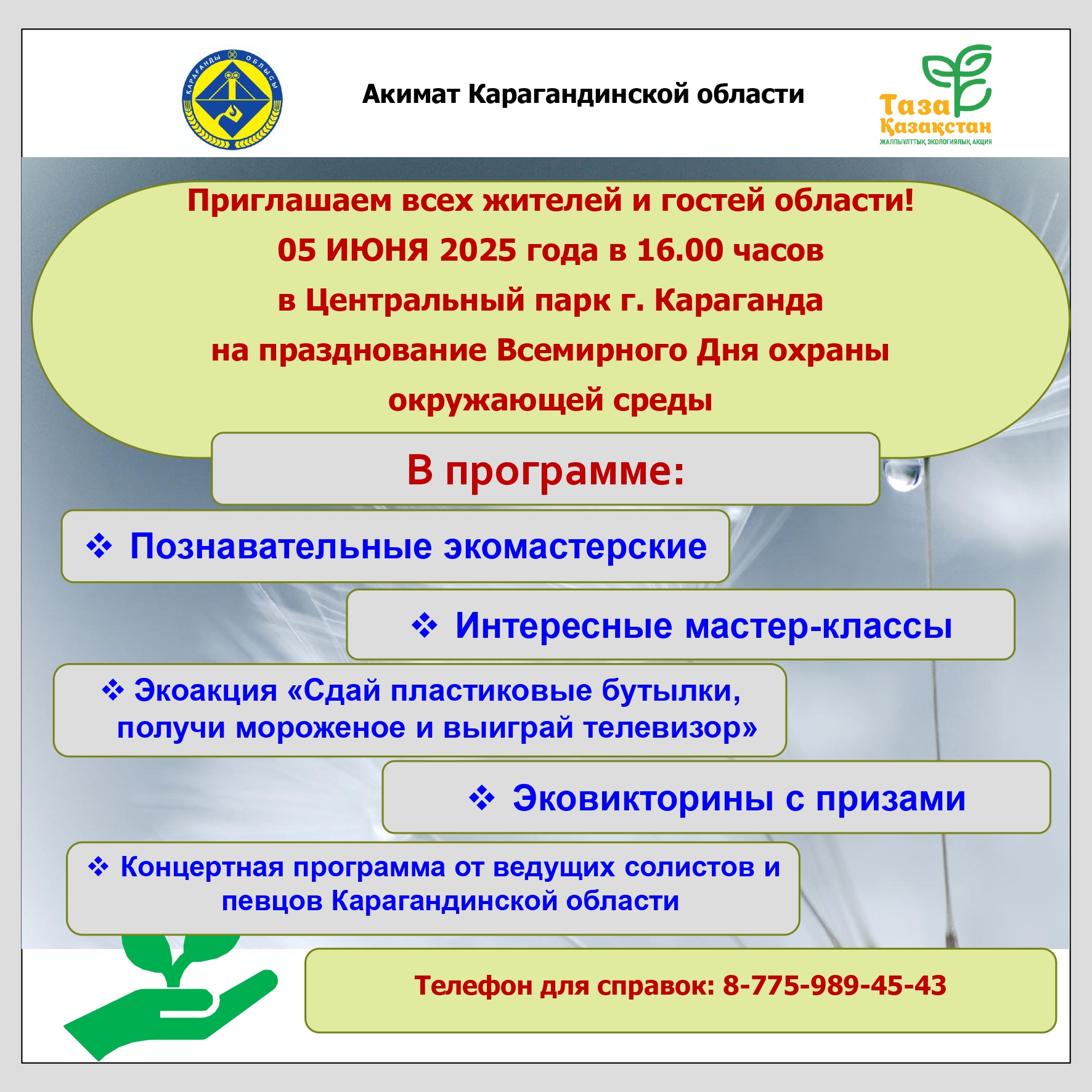 Сіздерді 5 маусымда сағат 16.00-де Қарағанды қаласының Орталық саябағында күтеміз.