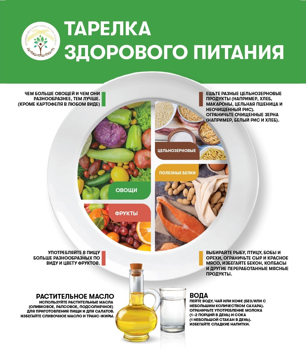 Ұлттық қоғамдық денсаулық сақтау орталығы «Дұрыс тамақтану тарелкесі» бейнеленген көрнекі постерлерді қазақ және орыс тілдерінде дайындады. Оларды басып шығарып, үйдегі тоңазытқышқа, мектеп асханасына, кеңсеге немесе тіпті емханаға іліп қоюға болады. Бұл – салауатты өмірге бастар алғашқы және өте маңызды қадам.