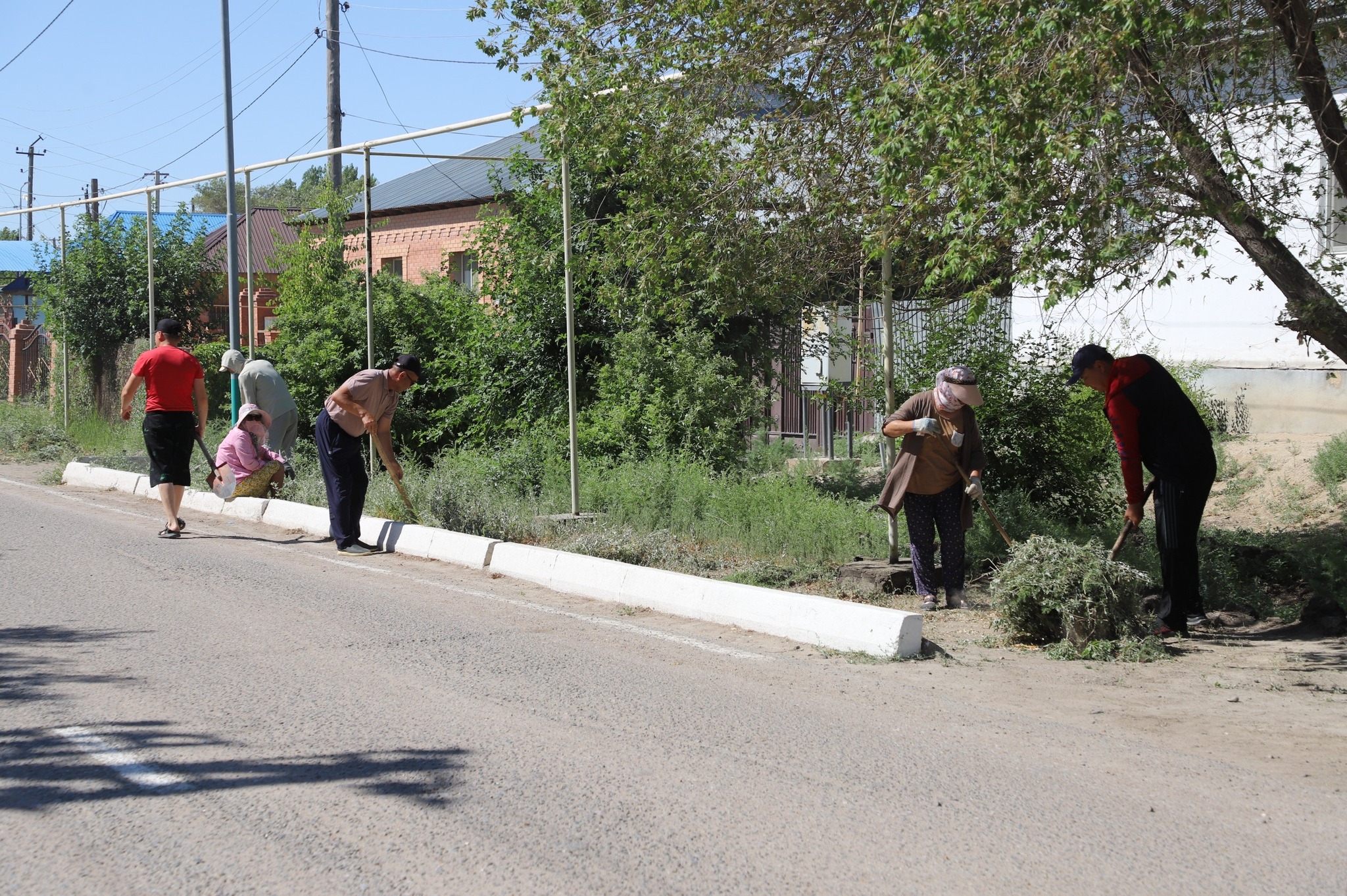 Тазалық шаралары тек аудан орталығында ғана емес, барлық елді мекендерде де қарқынды түрде жүргізілді. Сенбілік аясында көгалдандыру жұмыстары қолға алынып, жасыл желектер отырғызылды.