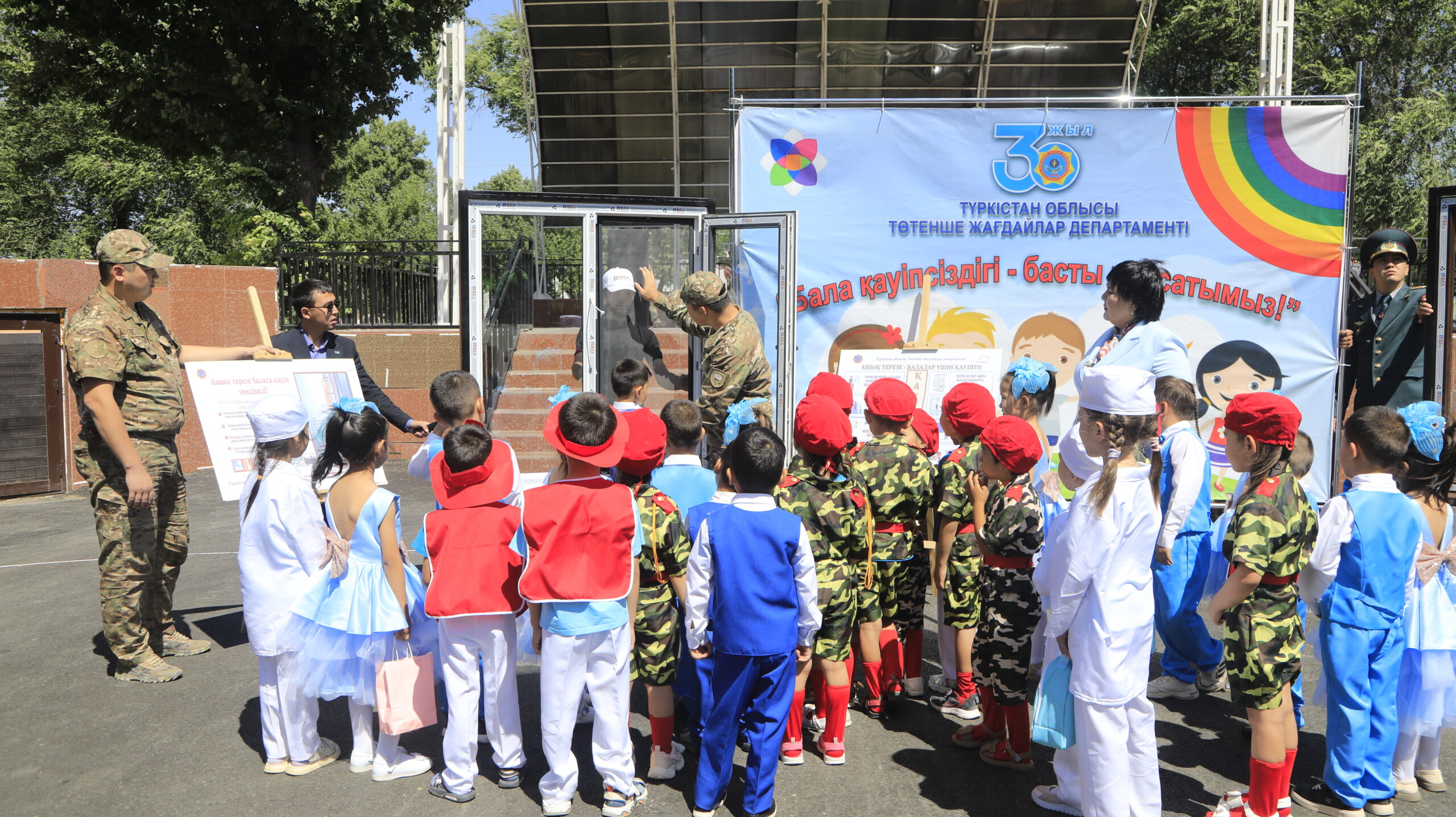Түркістан облысы Төтенше жағдайлар департаментінің ұйымдастыруымен Түркістан қаласында Халықаралық балаларды қорғау күніне ұйымдастырылған «Балалар қауіпсіздігі – басты назарда!» атты ауқымді іс-шара өткізілді.Іс-шараның мақсаты – балалардың өмір қауіпсіздігі мәдениетін дамытуға және қалыптастыруға, төтенше жағдайларда жүріс-тұрыс ережелерінің маңыздылығын түсінуге, алғашқы көмек көрсету және жарақаттанудың алдын алу дағдыларын дамытуға жәрдемдесу болып табылады.