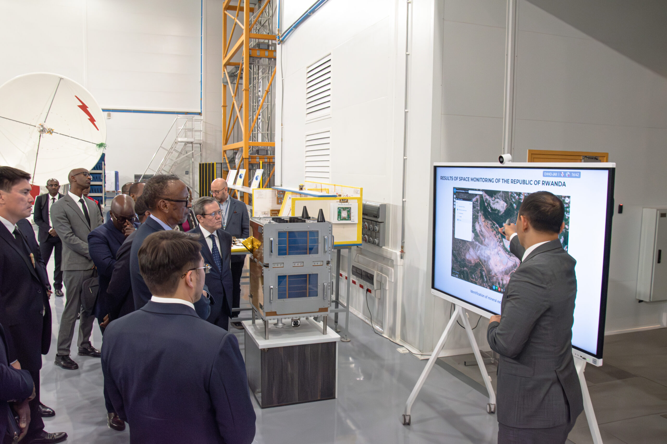 Қазақстанға ресми сапары және Астана халықаралық форумына қатысуы аясында Руанда Республикасының Президенті Поль Кагаме «Қазақстан Ғарыш Сапары» ҰК» АҚ Ұлттық ғарыш орталығында болды.