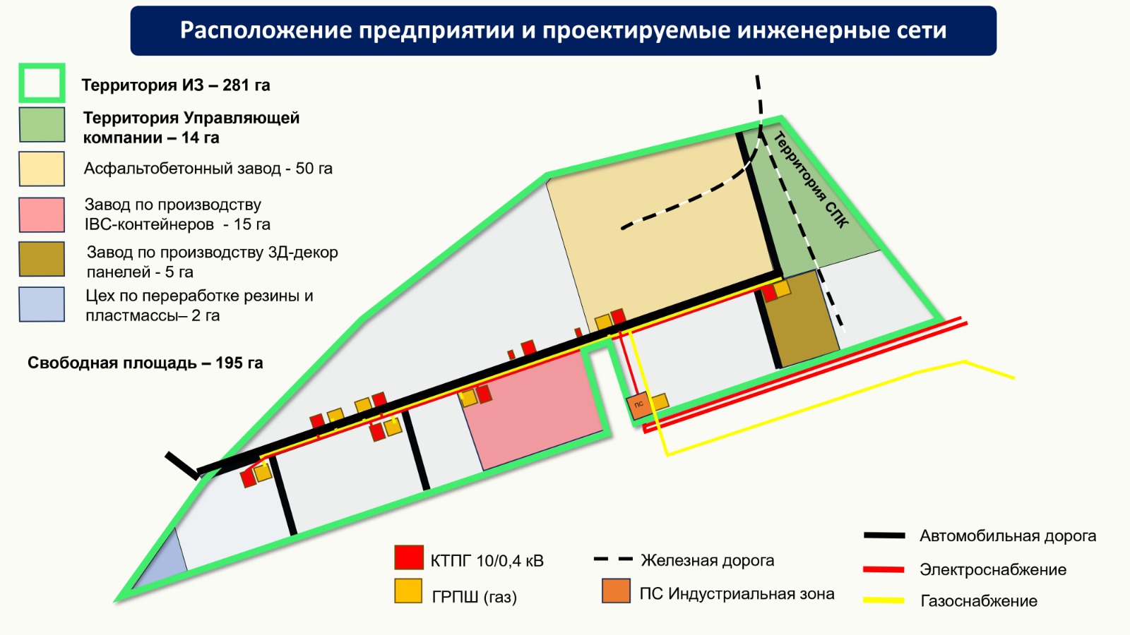 Индустриялық аймақ аумағында алғашқы өндірістік жобалар іске асырылып жатыр. Мәселен, қуаттылығы сағатына 240 тонна болатын асфальтбетон зауытының құрылысы аяқталуға жақын. Зауыт 50 гектар жерге орналасқан. Оны биыл іске қосу жоспарлануда.