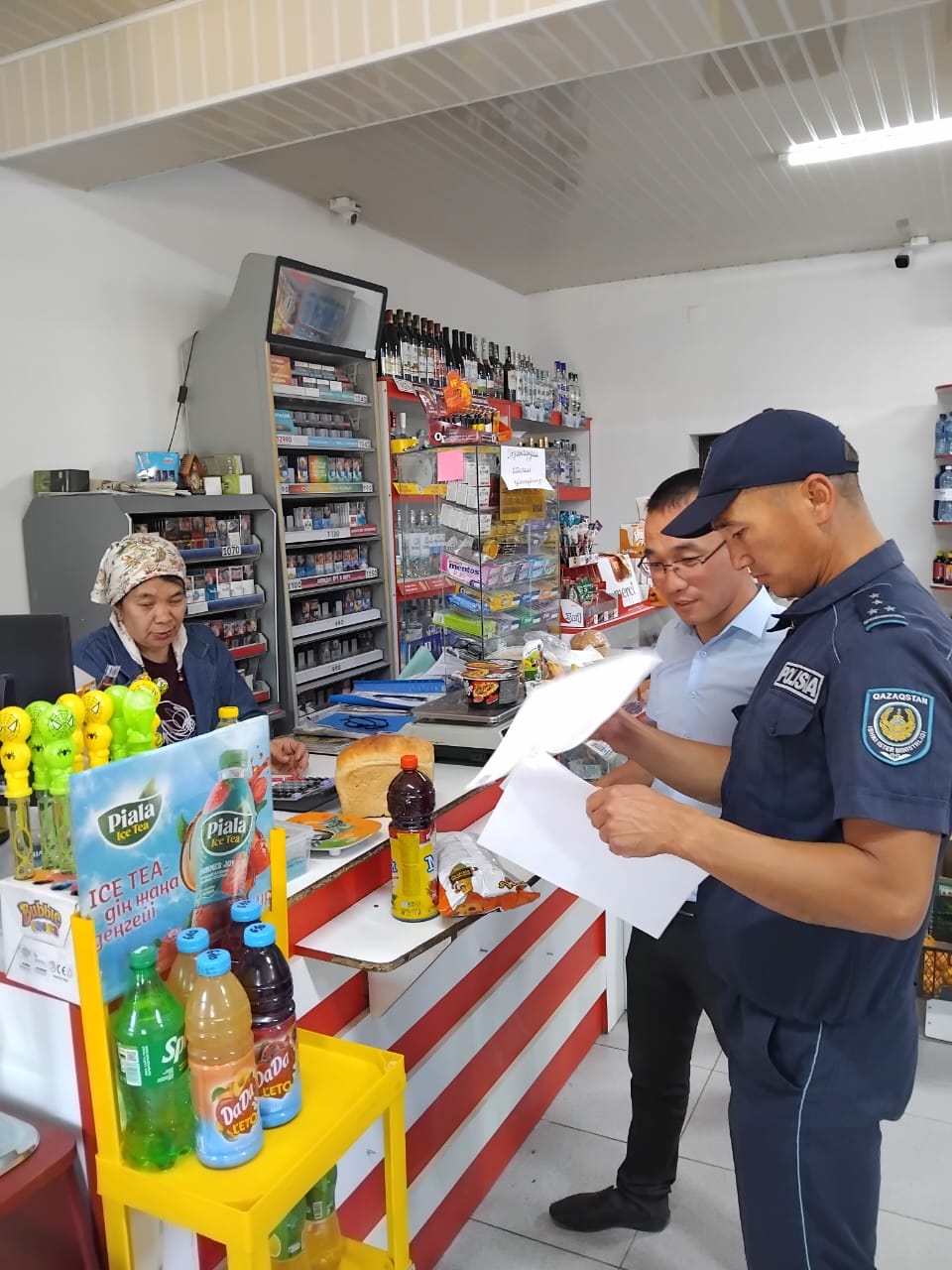 Жағатал ауылдық округінің учаскелік полиция капитаны У. Угивпен бірлесе отырып, кәмелетке толмағандарға алкоголь және темекі өнімдерін сатуға тыйым салу туралы заңнама талаптарының сақталуын бақылау мақсатында Қазақстан ауылындағы дүкендерге бірлескен рейдтік іс-шаралар жүргізілді.