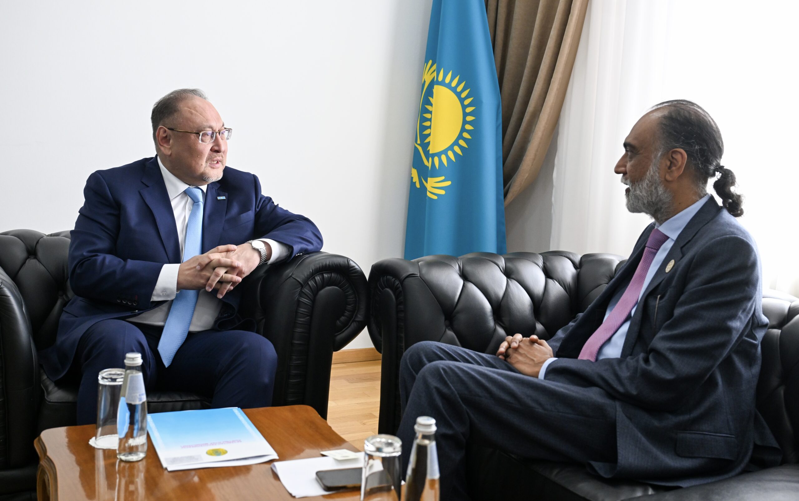 Астана, 2025 жылғы 30 мамыр – Астана халықаралық форумы аясында Қазақстан Республикасы Сыртқы істер министрінің бірінші орынбасары Ақан Рахметуллин БҰҰ Бас хатшысының орынбасары – БҰҰ Бас хатшысының цифрлық және перспективалық технологиялар жөніндегі арнайы өкілі Амандип Сингх Гиллмен кездесті.