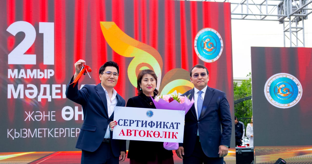 Ал ЕҢ ҮЗДІК МӘДЕНИ МЕКЕМЕ НОМИНАЦИЯСЫНЫҢ жеңімпазы «Үшқоңыр» этно-фольклорлық ансамблі ұжымына «JAC S3 PRO» автокөлігінің кілтін табыстадық.