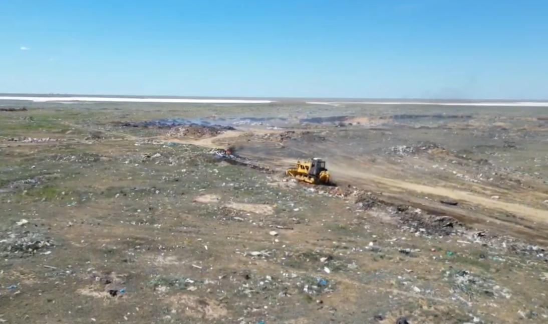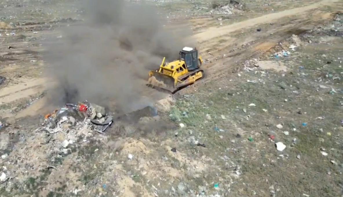 полигонында тазалық жұмыстары жүргізіліп, барлық тұрмыстық қалдықтар полигон ішіндегі карьерге төгіліп, тегістеу жұмыстары жүргізілуде.