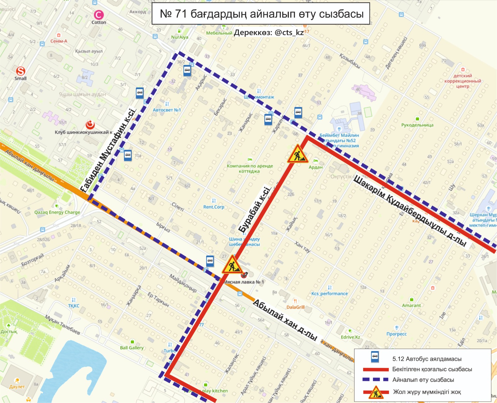 Осыған байланысты, 29-31 мамыр аралығында көлік қозғалысы толықтай шектеледі. Ал автобус маршруттарының өзгеріс схемасы жоғарыда көрсетілген.