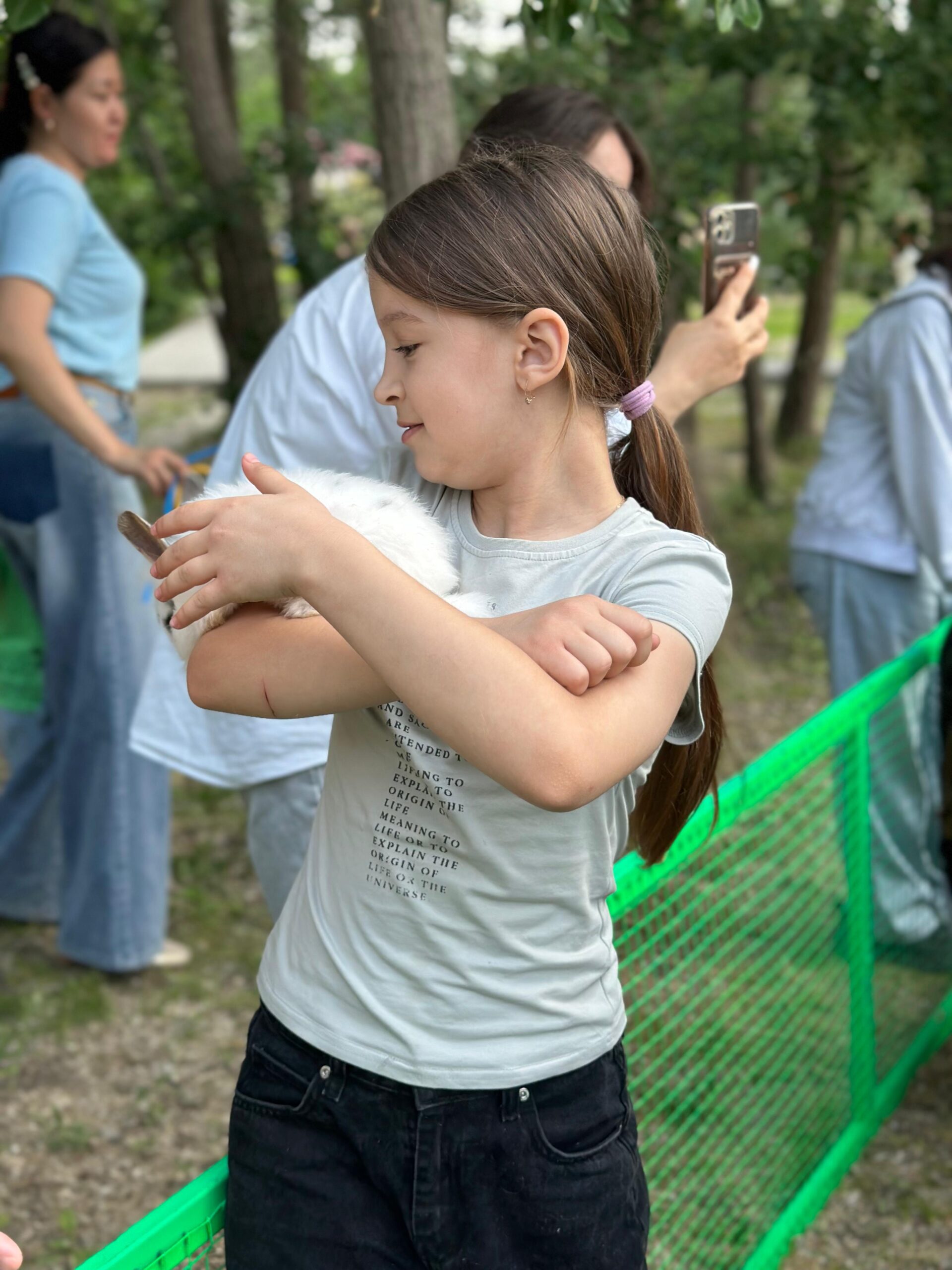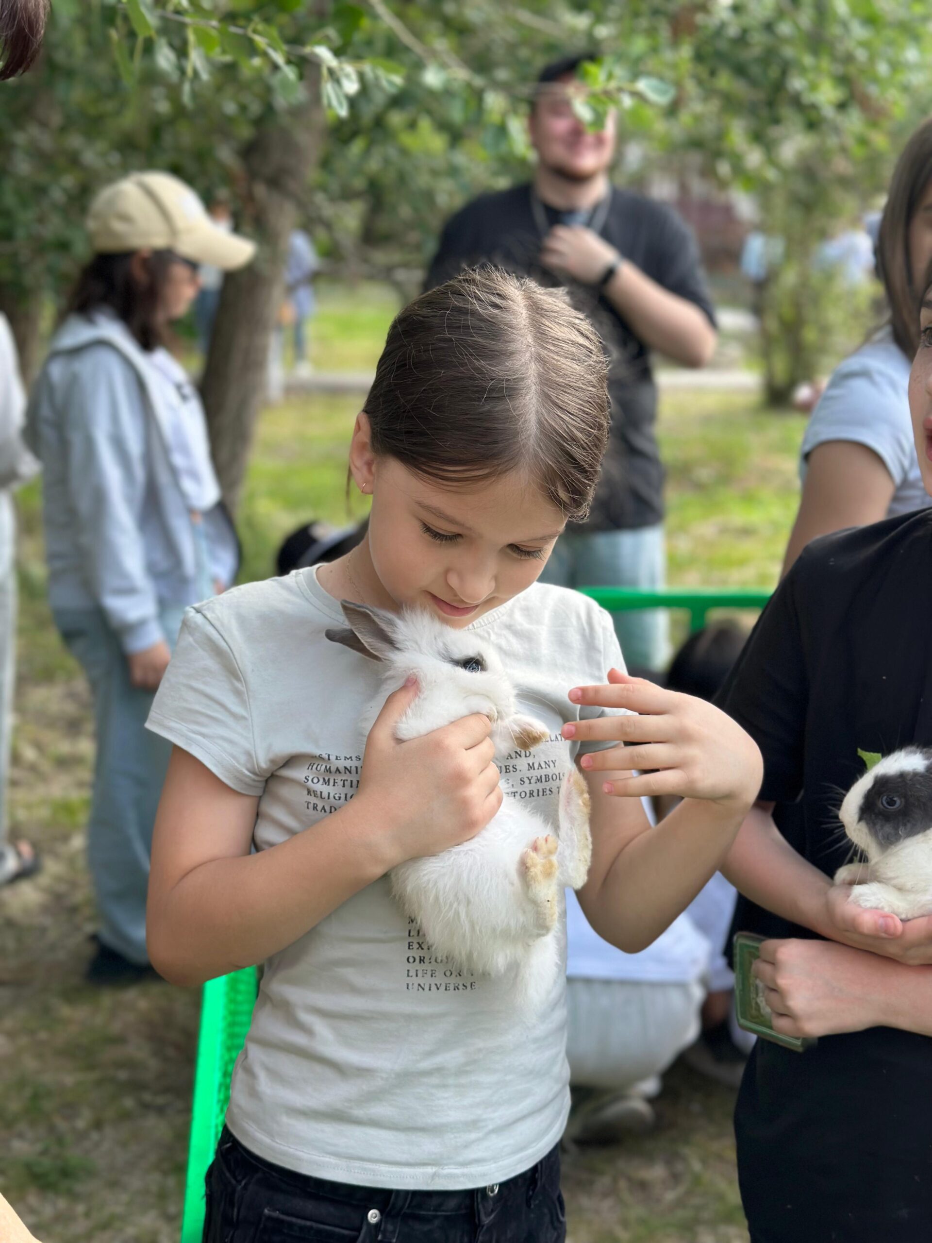 🐰 Ең қызықты сәттердің бірі — орталықтың шағын хайуанаттар бұрышында өтті. Мұнда балалар өз қолдарымен қоян, тасбақа сынды қолға үйретілген жануарларды ұстап көріп, оларға қамқорлық жасаудың маңызын ұғынды. Бұл сәт кішкентай қонақтар үшін ерекше әсерлі болды – олардың жануарларға деген қызығушылығы мен мейірімі арта түсті.