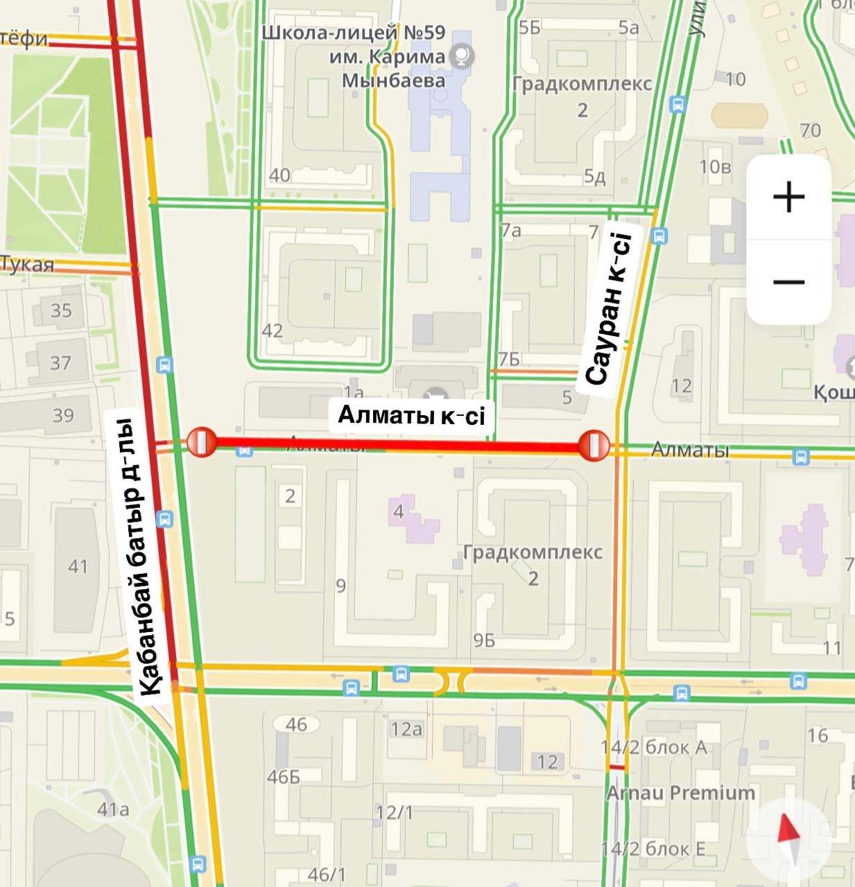 Жүргізушілер мен жаяу жүргіншілер қозғалыс бағытын алдын ала жоспарлауы және ықтимал өзгерістерді ескеруі қажет. Қауіпсіздікті қамтамасыз ету және қолайсыздықты азайту үшін уақытша жол белгілері мен көрсеткіштер орнатылатын болады.