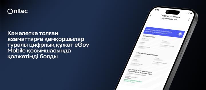 eGov Mobile мобильді қосымшасында кәмелет жасына толған азаматтарға қамқоршылық жасайтын тұлғалар туралы мәліметтері бар цифрлық құжат қолжетімді болды. Бұл құжат «Е-Собес» ақпараттық жүйесіндегі деректер негізінде жасалады, онда тіркелген барлық қамқоршылар, қорғаншылар және олардың қамқорлығындағы азаматтар туралы мәліметтер сақталады.