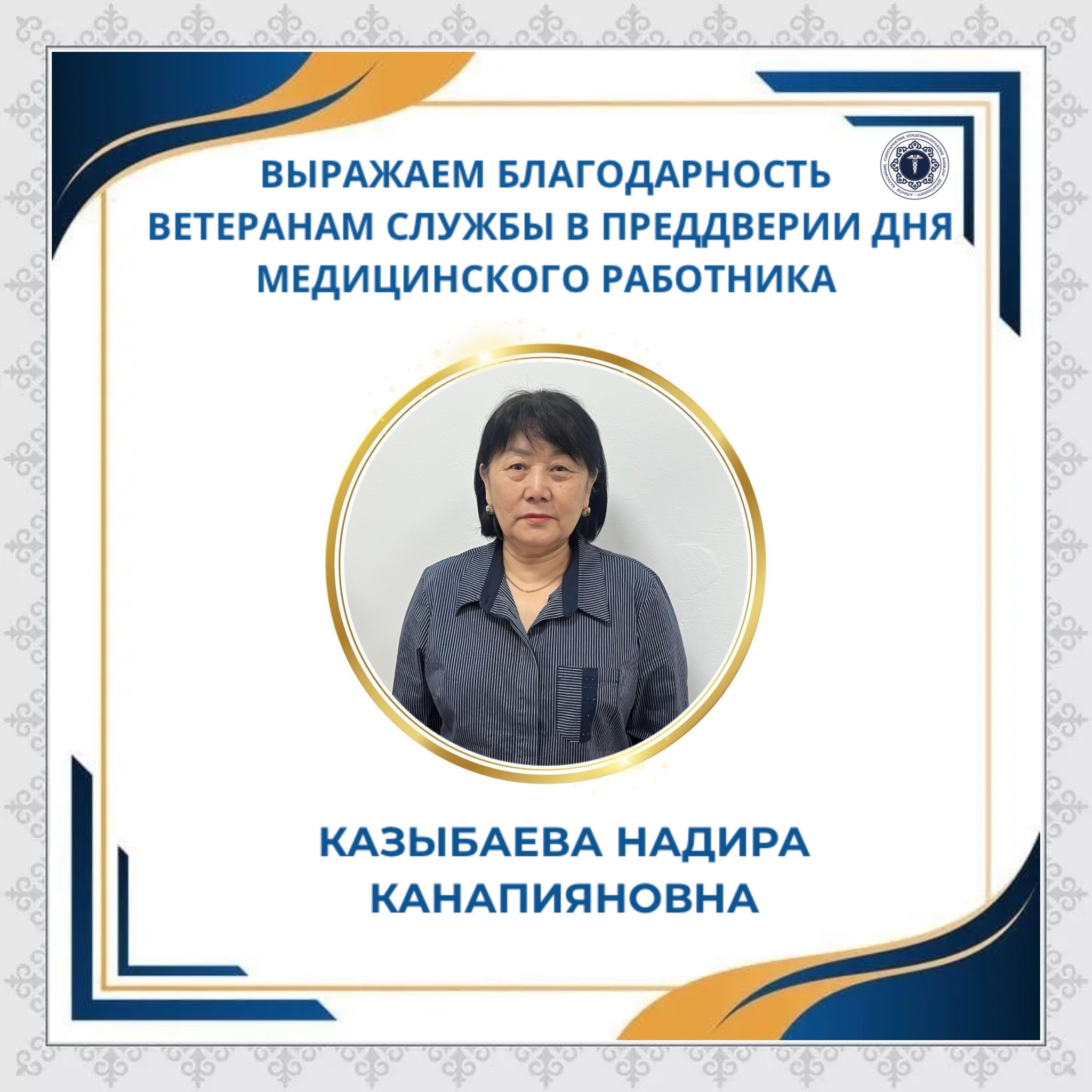 Алматы қаласының санитариялық-эпидемиологиялық бақылау департаменті Надира Қанапияқызы Қазыбаеваға көп жылдық еңбегі үшін алғыс айтады.