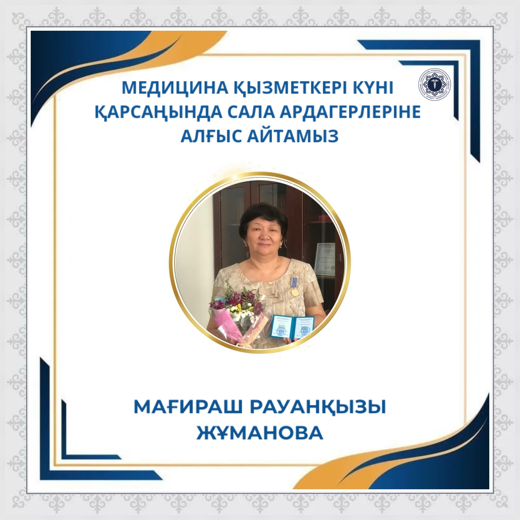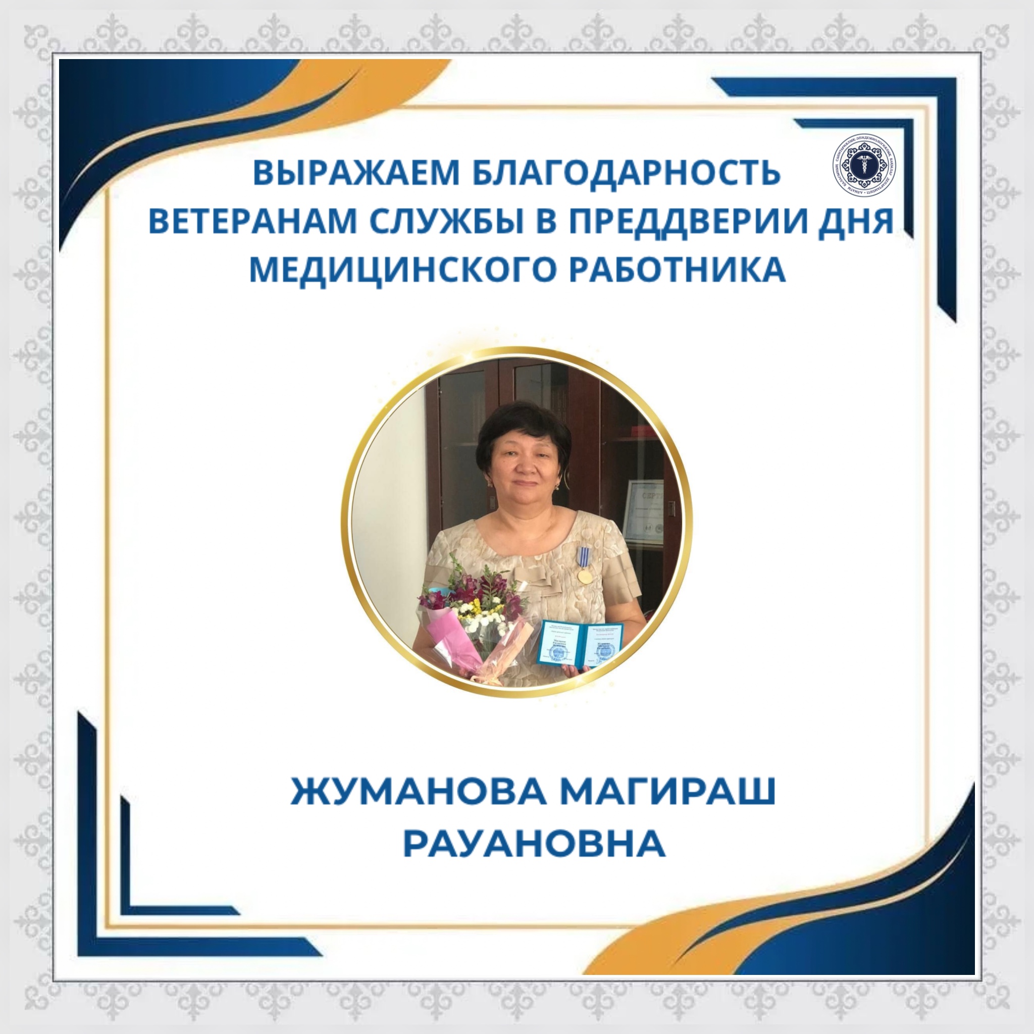 Алматы қаласының санитариялық-эпидемиологиялық бақылау департаменті Мағираш Рауанқызы Жұмановаға көп жылдық еңбегі үшін алғыс айтады.