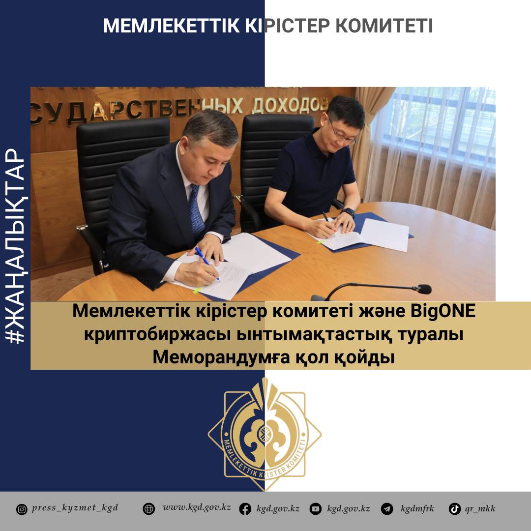 2025 жылғы 4 маусымда Қазақстан Республикасы Қаржы министрлігінің Мемлекеттік кірістер комитеті мен халықаралық BigONE криптовалюта биржасы ынтымақтастық туралы Меморандумға қол қойды.