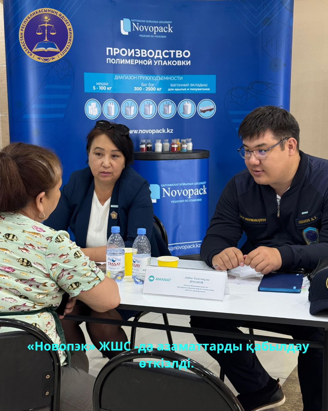 2025 жылғы 05 маусымда қоғамда «Заң және тәртіп» идеологиясын ілгерілету жөніндегі тұжырымдаманы іске асыру шеңберінде Ақмола облысы Әділет департаменті облыстық «AMANAT» партиясымен  бірлесіп,  Ақмола облысы адвокаттар алқасы мен аумақтық нотариалдық платасы және сот орындаушылар палатасы өкілдерінің қатысуымен «Новопэк» ЖШС -да азаматтарды қабылдау өткізді.