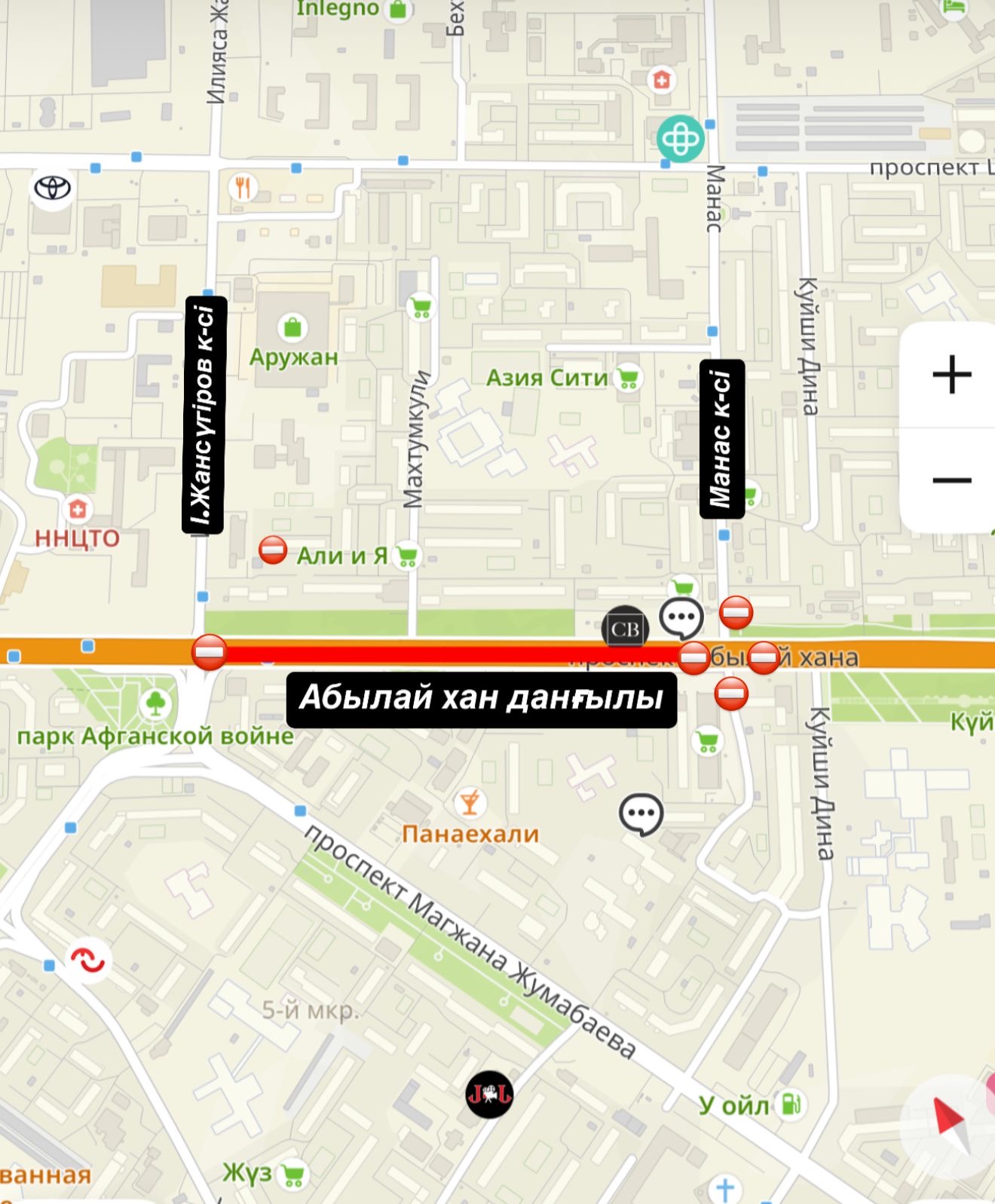 Вместе с тем, перекресток пр. Абылай хана/ул. Манаса будет также перекрыт.