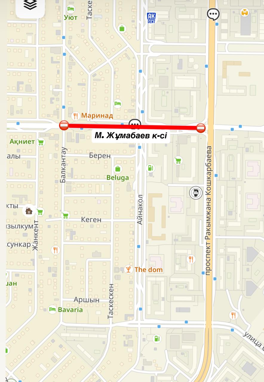 Қала тұрғындары мен қонақтарын Р. Қошқарбаев даңғылынан Балқантау көшесіне дейінгі учаскеде М.Жұмабаев даңғылы бойындағы жол жабынының жоғарғы қабатын салу бойынша жұмыстарды жүргізілетіні туралы хабардар етеді.