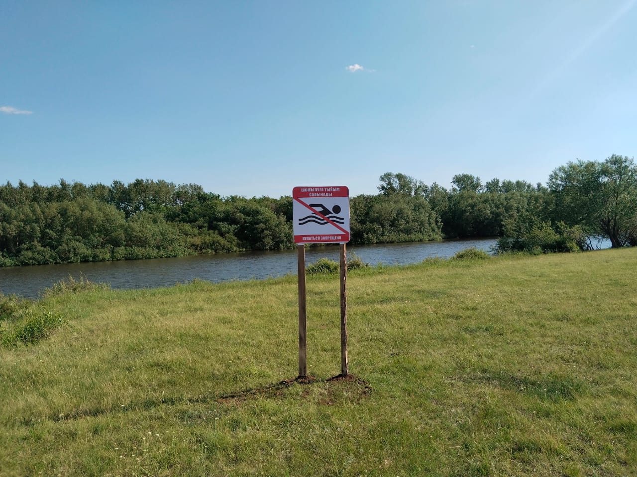 Новоселовка ауылынан 3 шақырым жерде “Сад” тоғайында “Шомылуға тыйым салынады” белгісі орнатылған