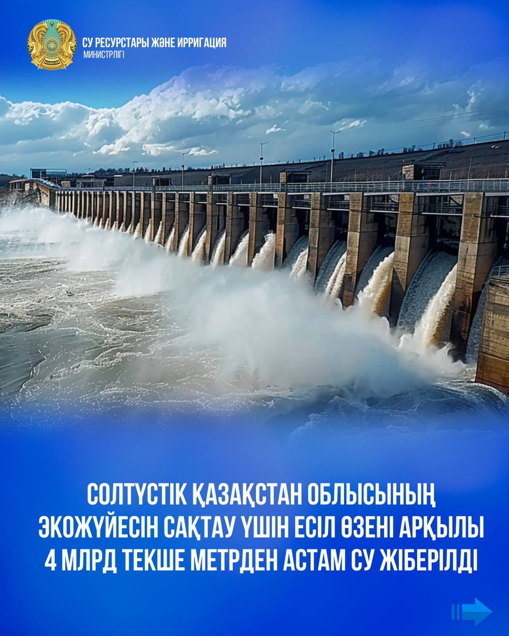 Табиғатты қорғау мақсатында Су ресурстары және ирригация министрлігі Есіл өзеніне Солтүстік Қазақстан облысындағы Сергеев су қоймасынан 4 млрд текше метрден астам су жіберді.