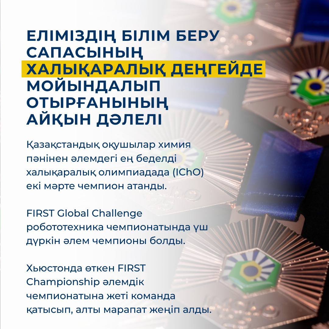 2024–2025 оқу жылында қазақстандық оқушылар 12 халықаралық олимпиадаға қатысып, 362 медаль жеңіп алды