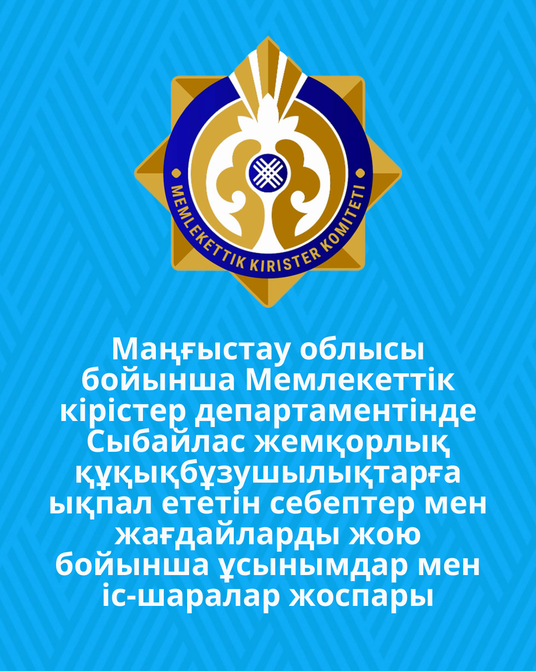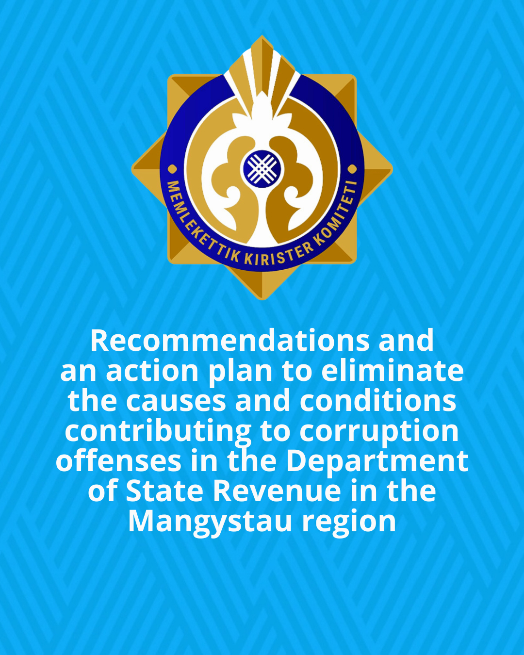 Маңғыстау облысы бойынша Мемлекеттік кірістер департаментінде Сыбайлас жемқорлық құқықбұзушылықтарға ықпал ететін себептер мен жағдайларды жою бойынша ұсынымдар мен іс-шаралар жоспары