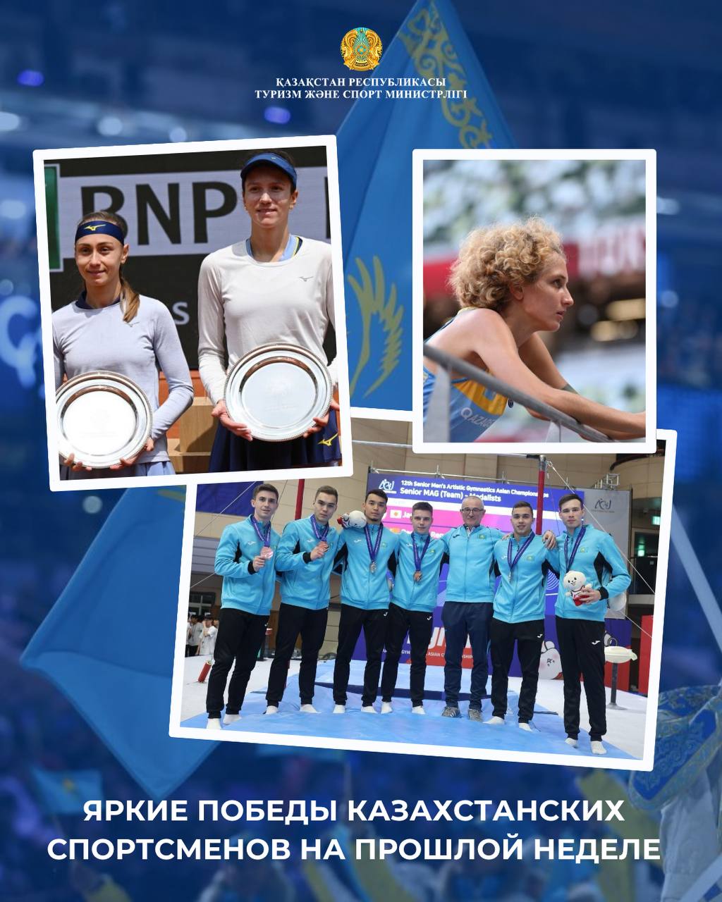 Спорттық гимнастика: Оңтүстік Кореяның Чечхон қаласында өткен жасөспірімдер мен ересектер арасындағы Азия чемпионатында Қазақстан құрамасы жеті жүлдеге қол жеткізді. Оның үшеуі – алтын, екеуі – күміс, екеуі – қола.
