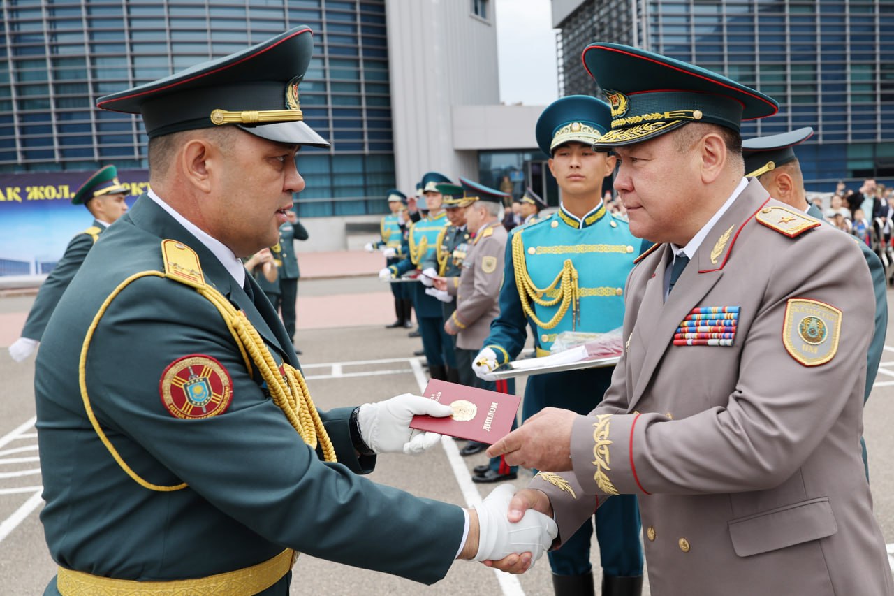 — Сіздерді әскери қызмет жолындағы тағы бір маңызды белестен сүрінбей өткендеріңізбен құттықтаймын. Университет қабырғасынан алған жоғары біліммен қатар, достық, қолдау рухын да өздеріңізбен бірге алып бара жатқандарыңызға сенімдімін. Бұл рух жылдар өте келе нығая түсіп, елдеріміздің қорғаныс қабілетін және бейбіт дамуын қамтамасыз етуге қызмет етеді, — деді Ұлттық ұлан Бас қолбасшысының орынбасары Бауыржан Абжанов түлектерге арнаған құттықтау сөзінде.