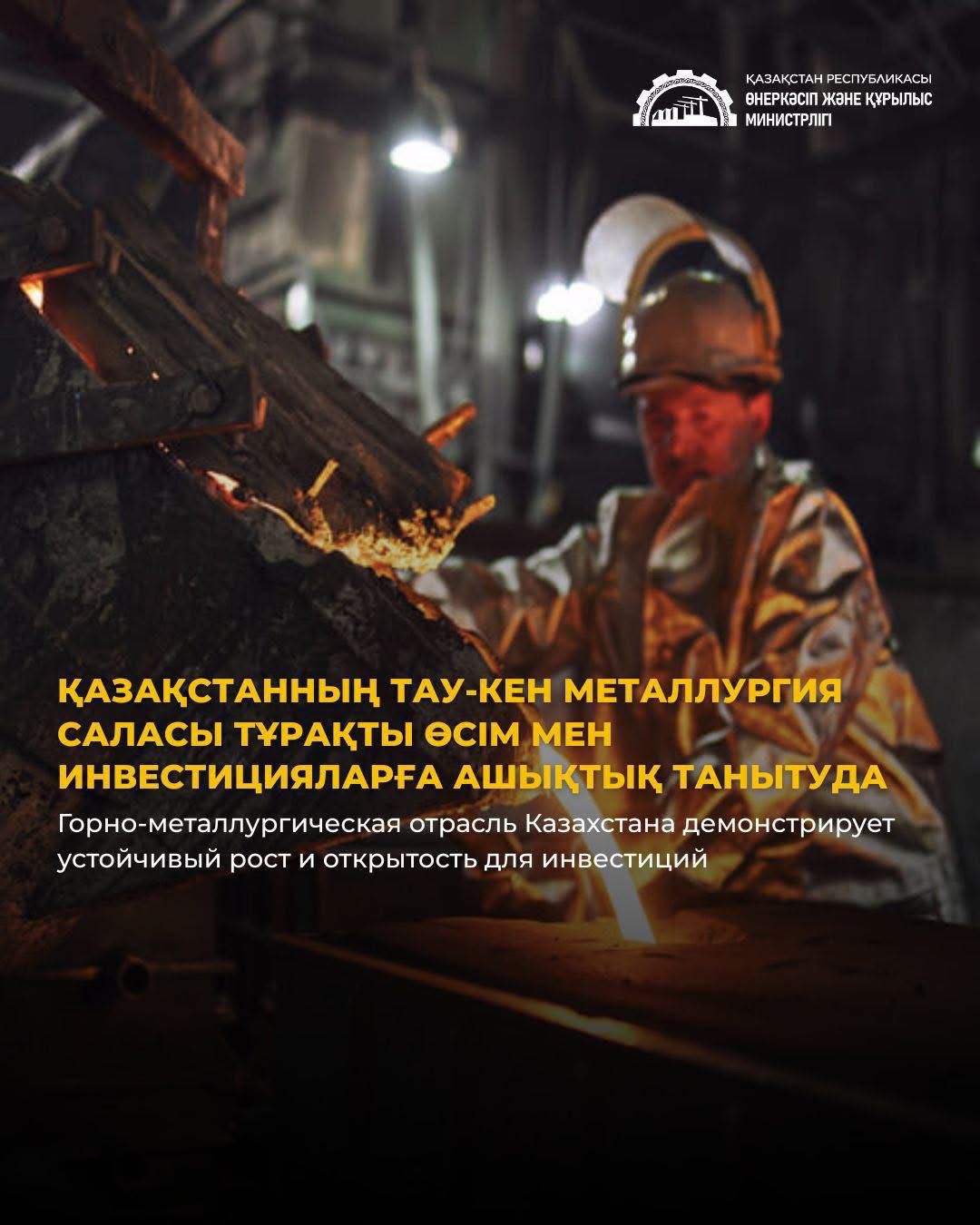➡️Тау-кен металлургия кешенінің ЖІӨ-дегі үлесі 8%, өндірілген өнім көлемі 14,3 трлн теңгеден, экспорт көлемі 21,4 млрд АҚШ долларынан асты.
