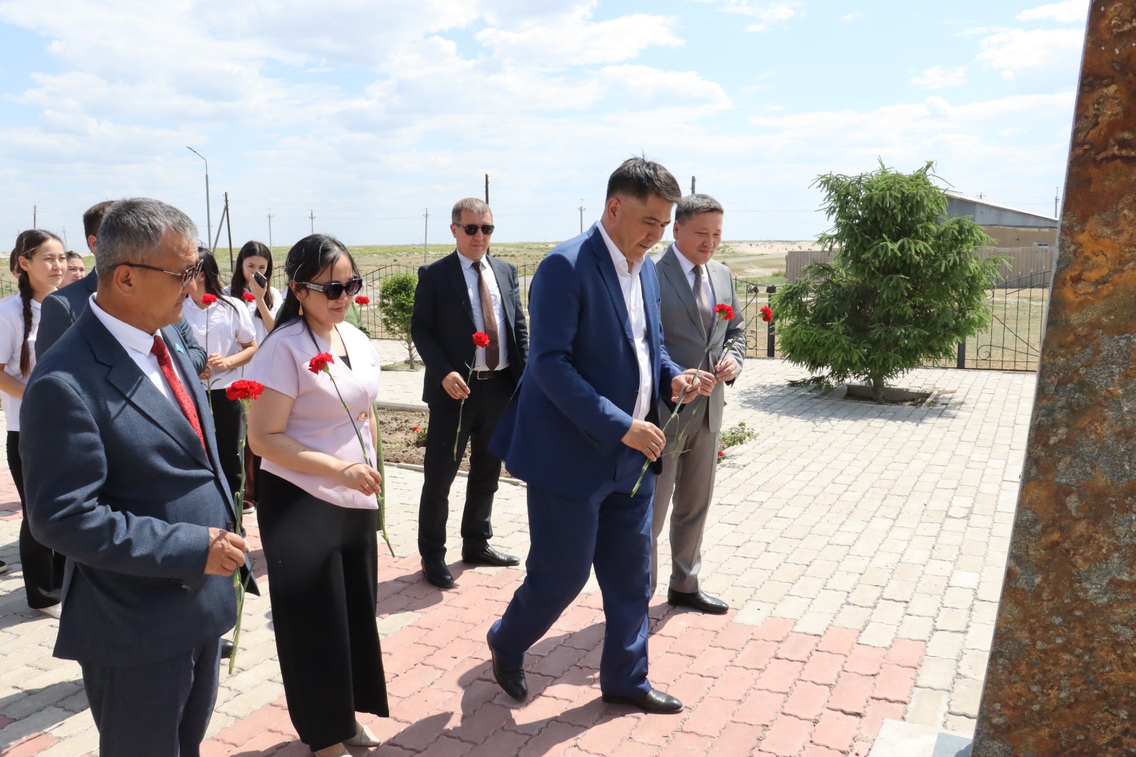 Келген меймандар Алаш және Қ.Хасанов атындағы музейге экскурсия жасап, арнайы ескерткіш тақтаға гүл шоқтарын қойып тағзым етті.