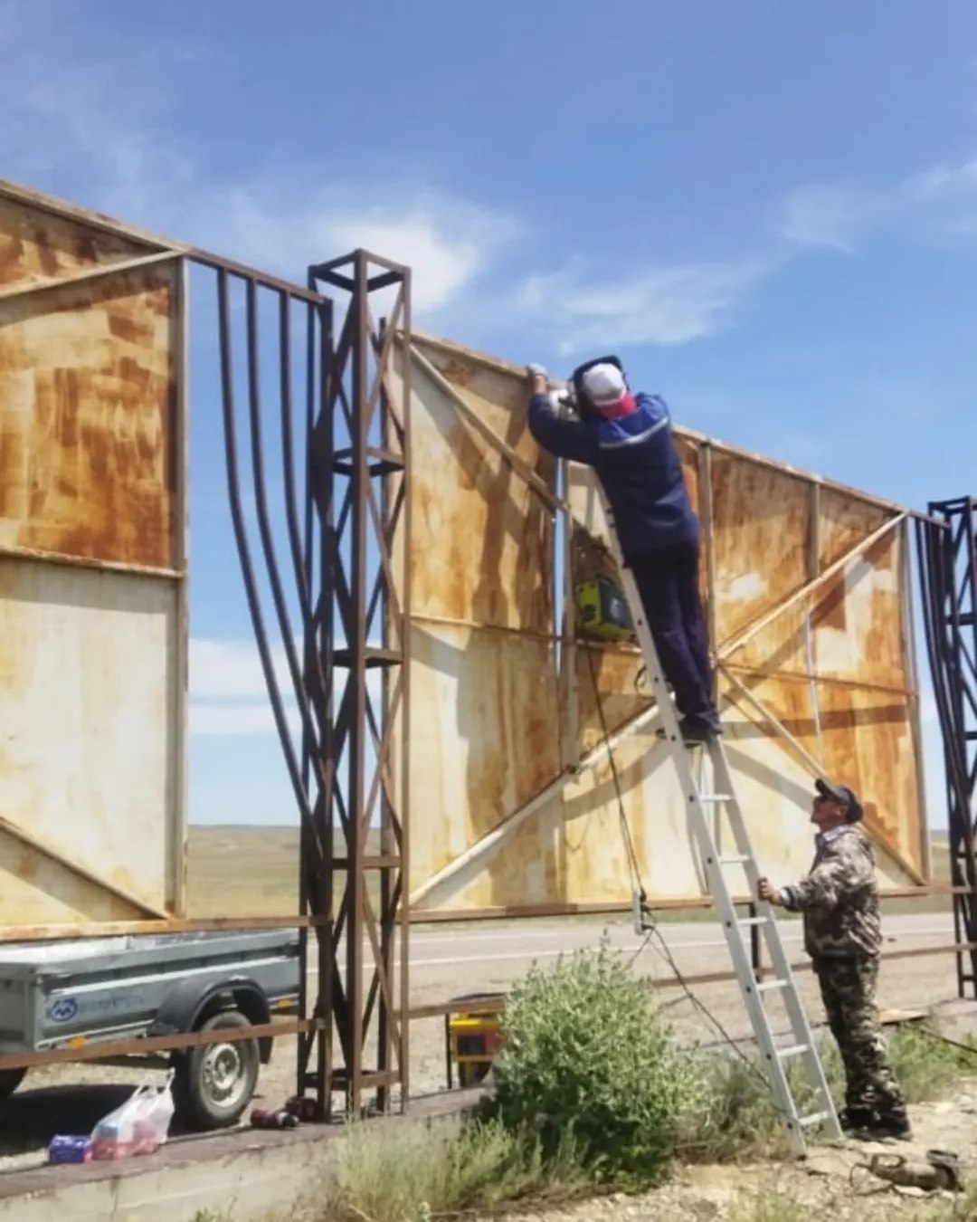 Ағымдағы жылдың 21 мамырында Үштөбе -Талдықорған тас жолының 22 шақырымында тарихи тұлғалардың суреті салынған темір қондырғыға жөндеу жұмыстары жүргізілді.